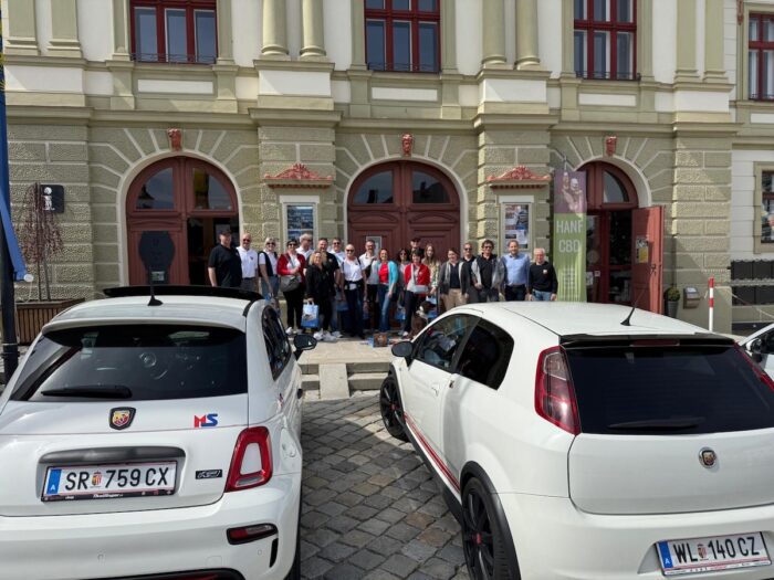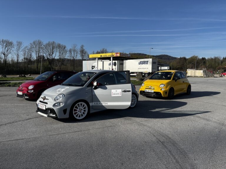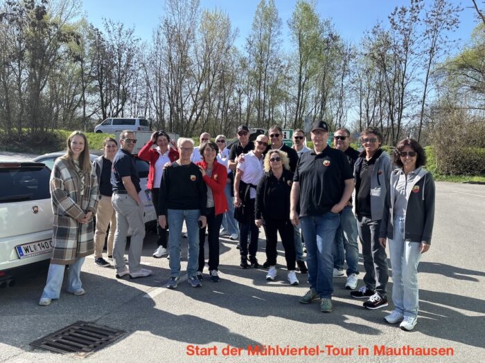 Dann waren es noch 10 Abarth und 19 froh gelaunte Abarthisti, die sich auf einem Parkplatz in Mauthausen trafen.