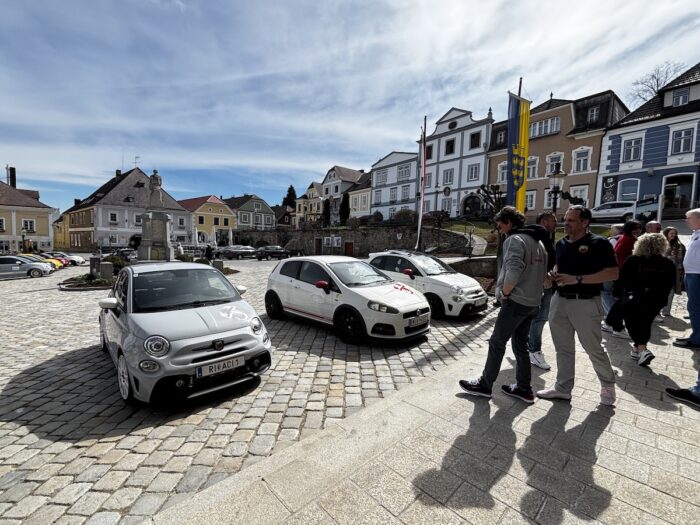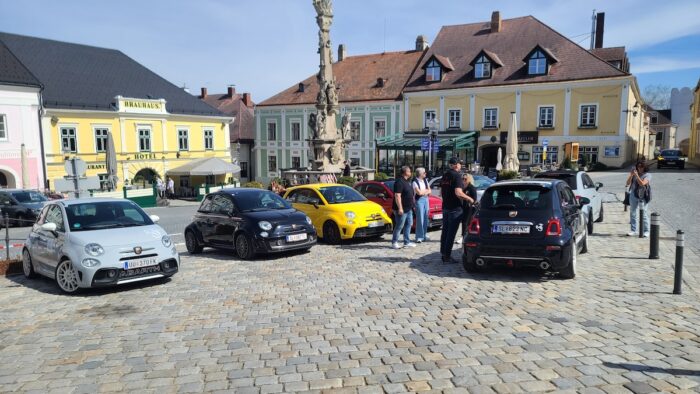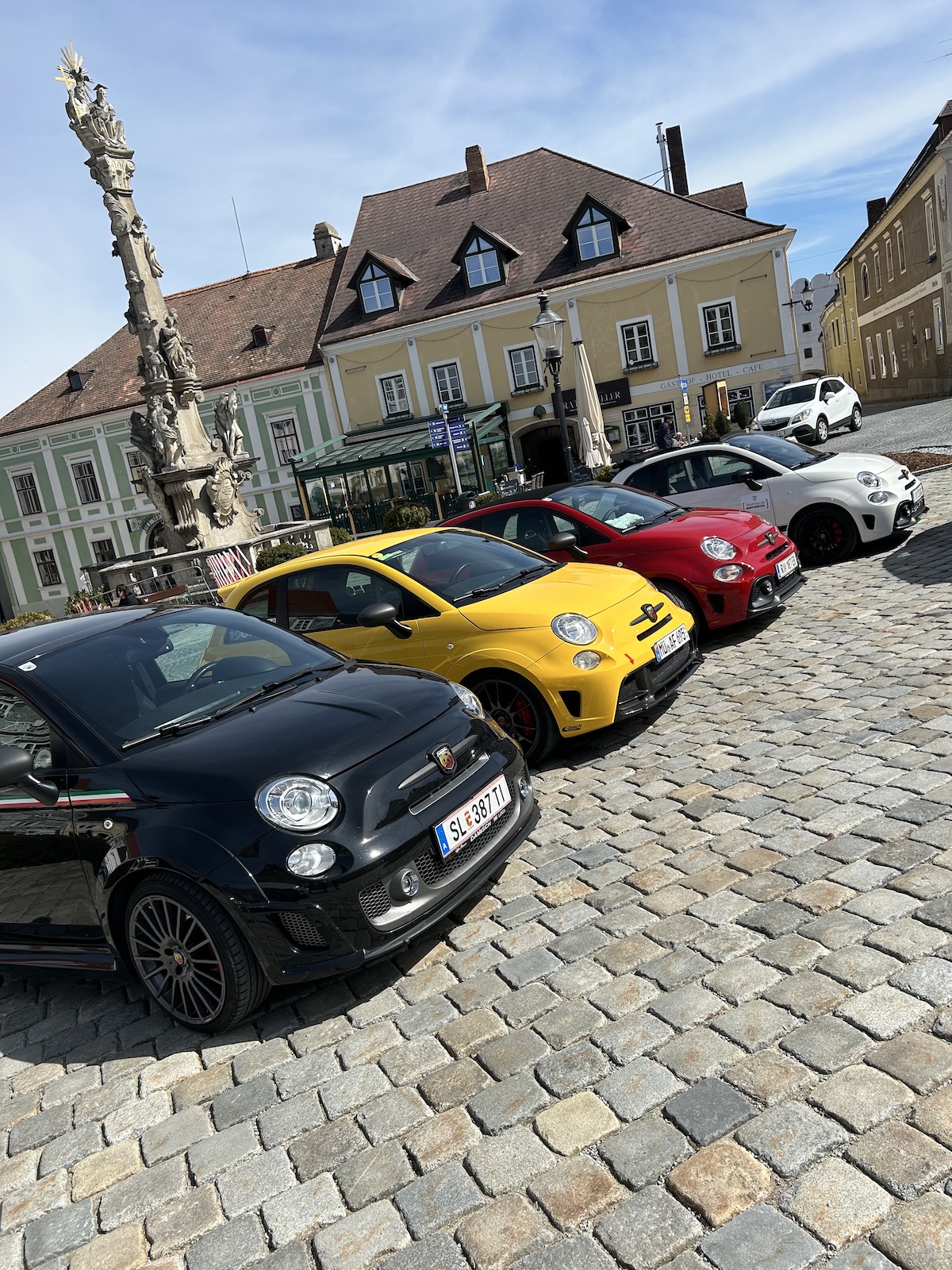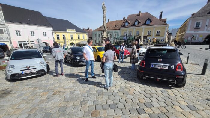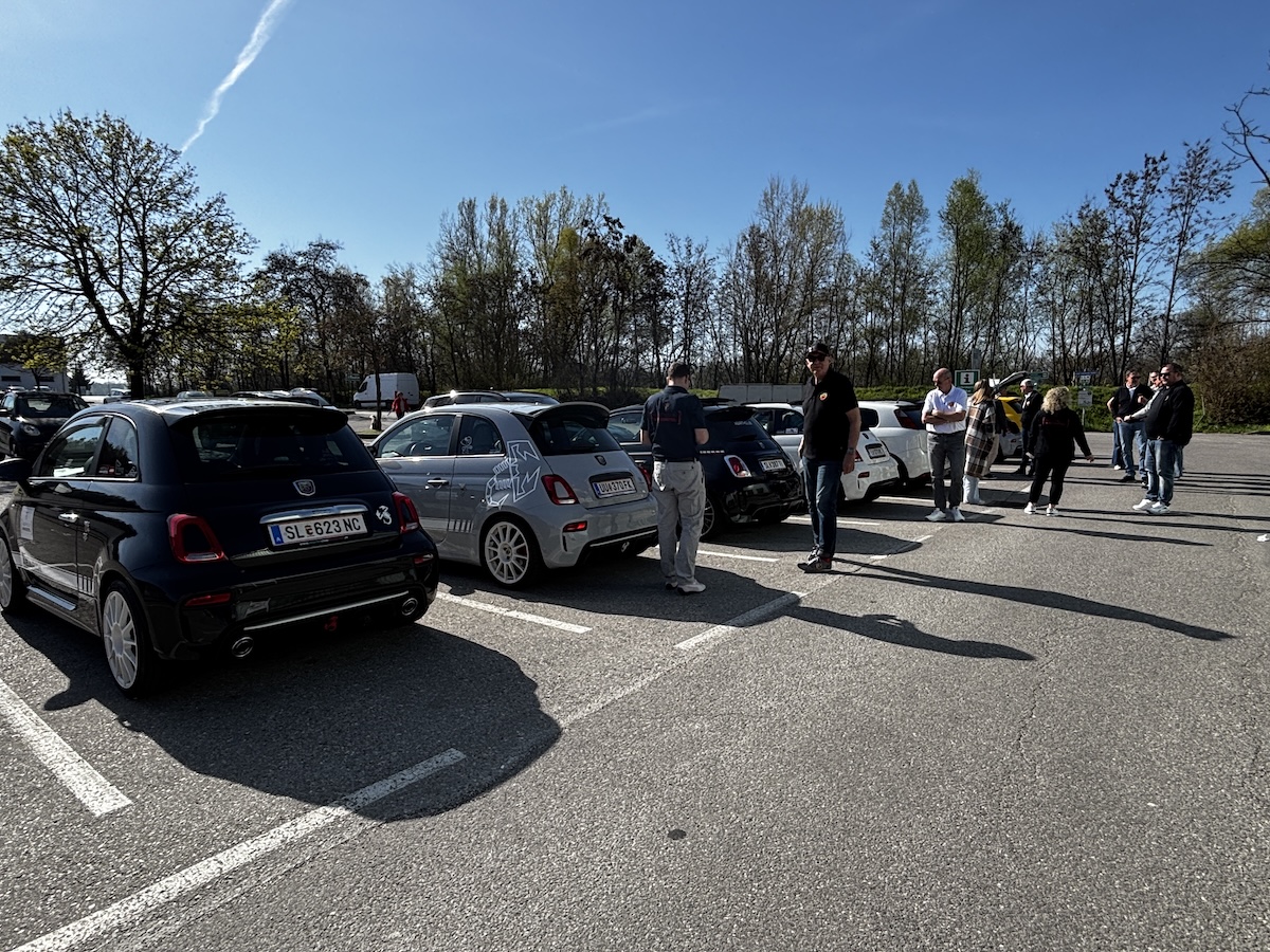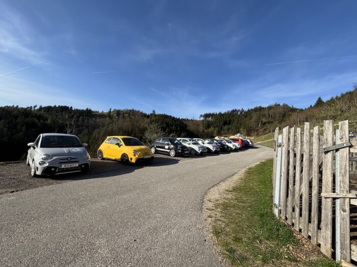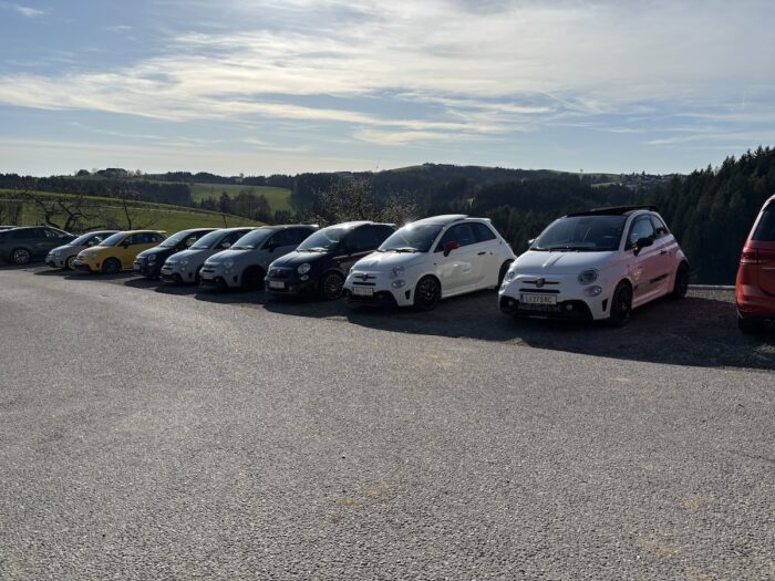 Dann waren es noch 10 Abarth und 19 froh gelaunte Abarthisti, die sich auf einem Parkplatz in Mauthausen trafen.