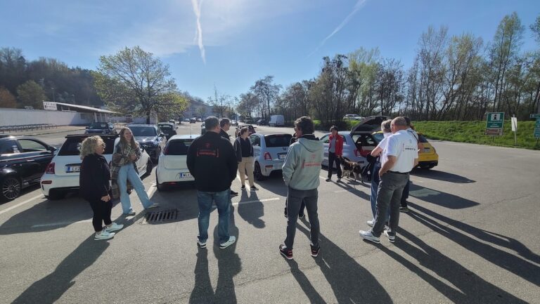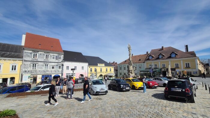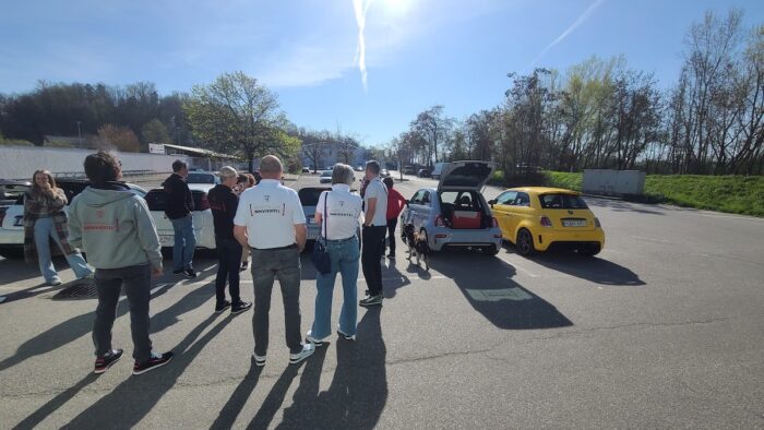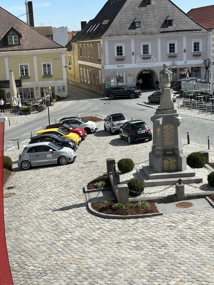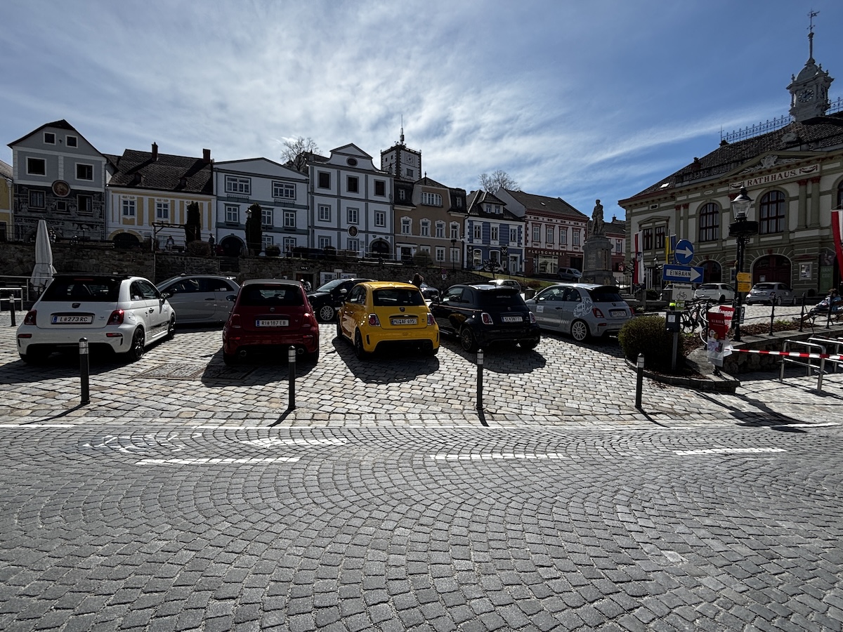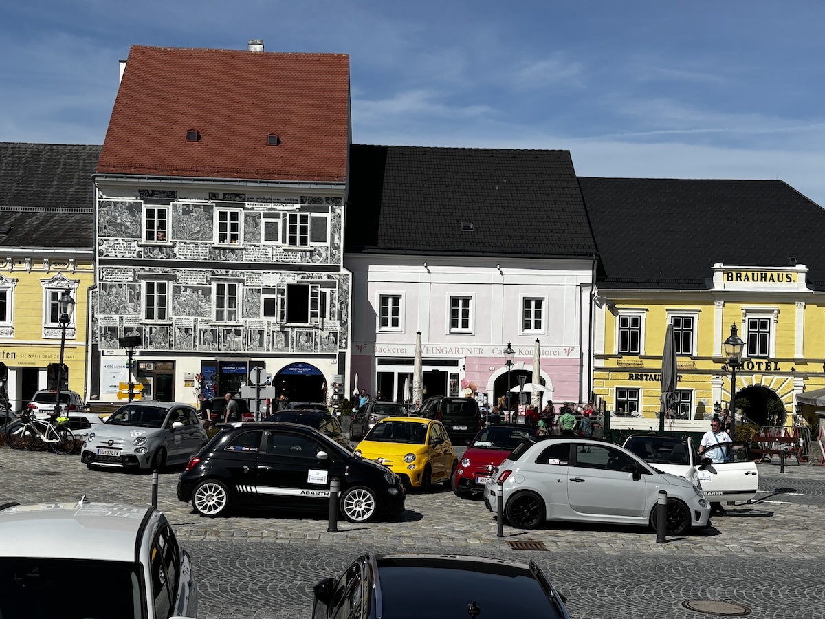 Dann waren es noch 10 Abarth und 19 froh gelaunte Abarthisti, die sich auf einem Parkplatz in Mauthausen trafen.
