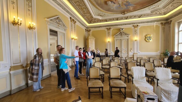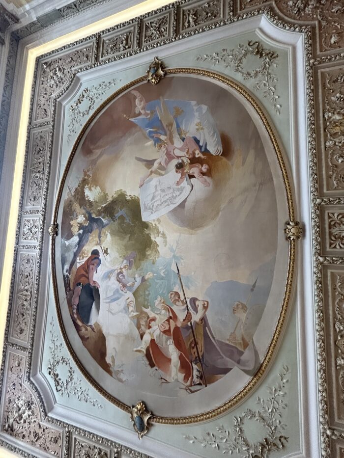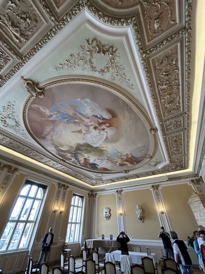 Mit Stolz wurden wir in den sehenswerten Rathaussaal geführt, dessen Deckenfresko die Gründungssage der Stadt Weitra darstellt.