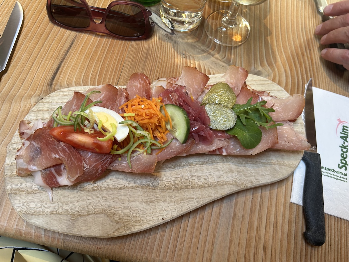 Holzofenbrot und Speck aus der eigenen Bio-Landwirtschaft. Den Genuss wollten wir uns nicht entgehen lassen.