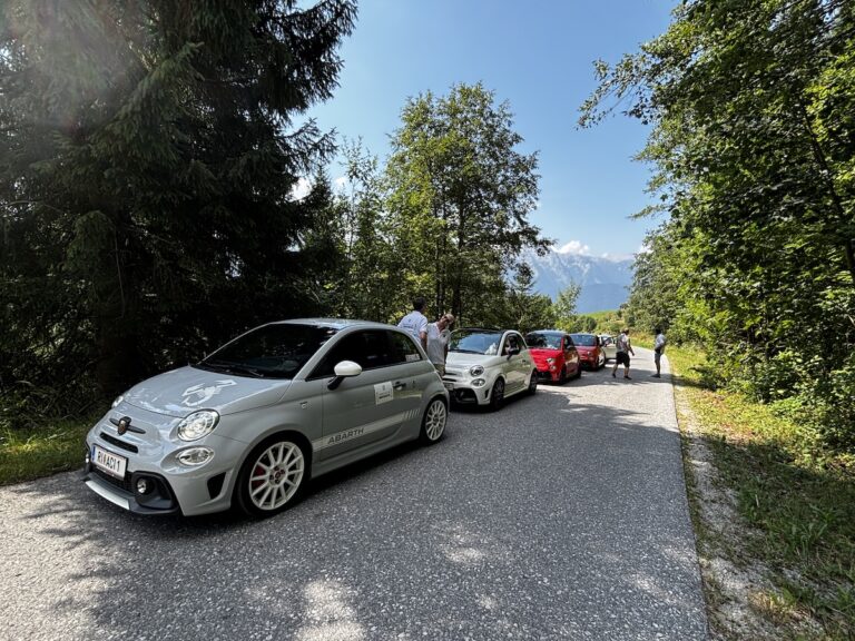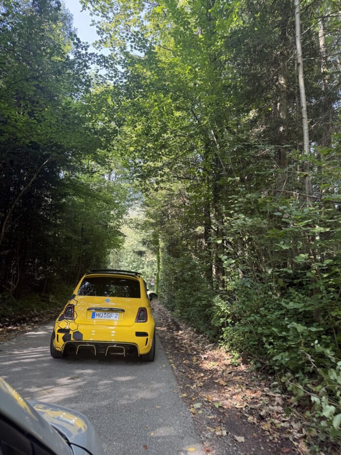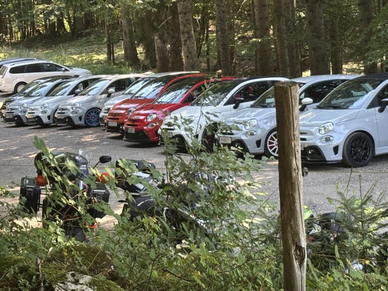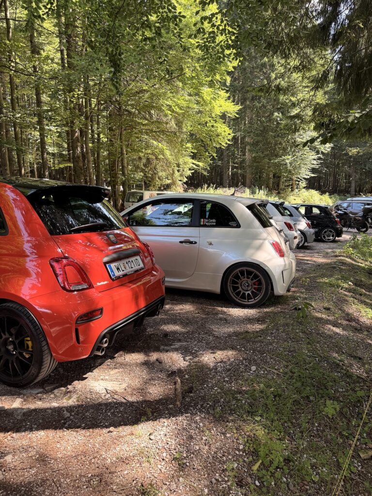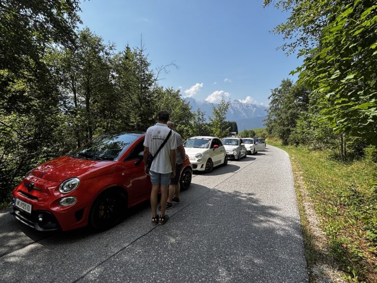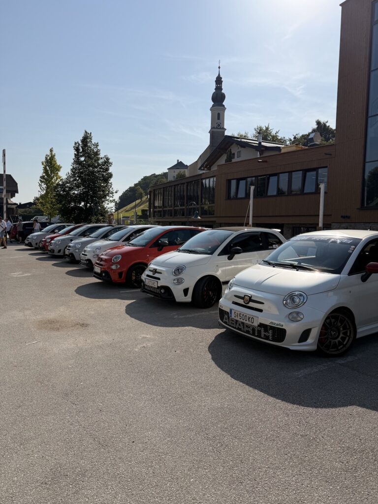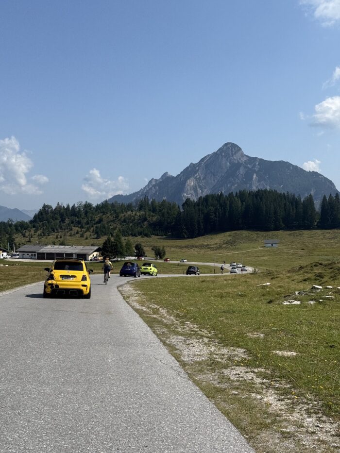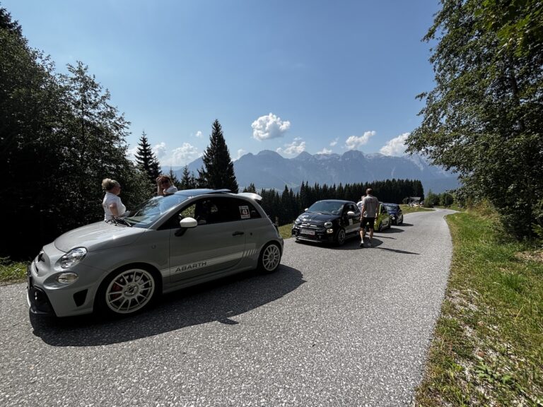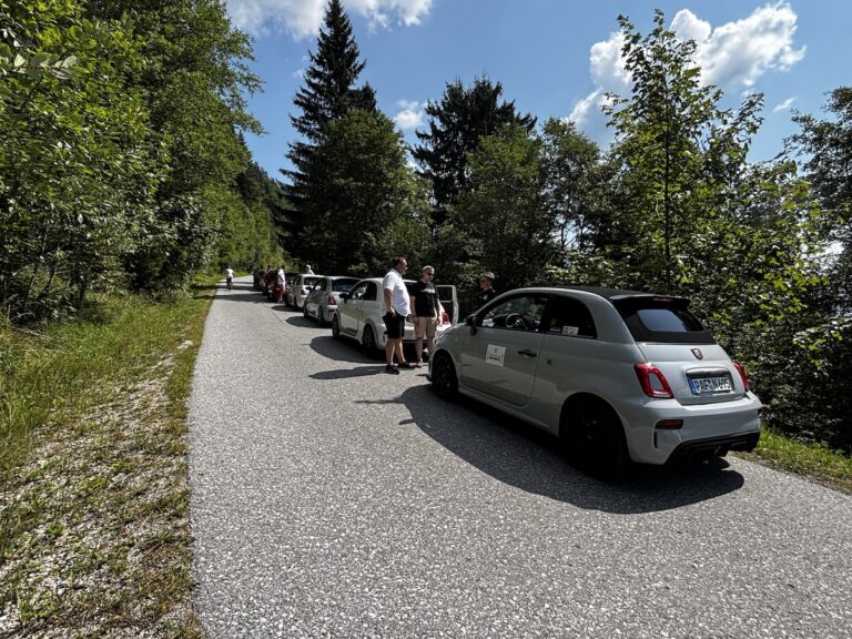 Mit 14 Abarth, weitere 5 folgten später, machten wir uns auf die Reise, die uns über Landstraßen zur Mautstation der ‚Postalmstraße‘ in Abtenau führte.