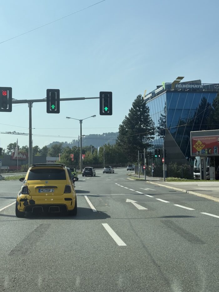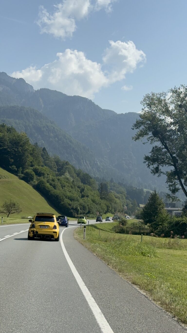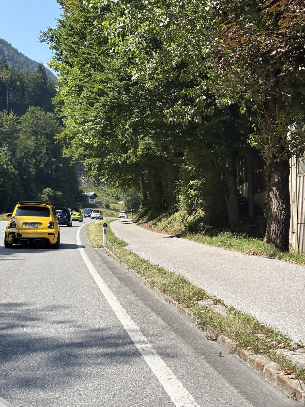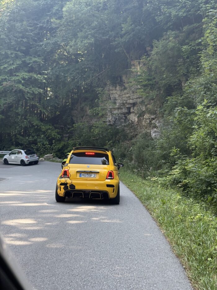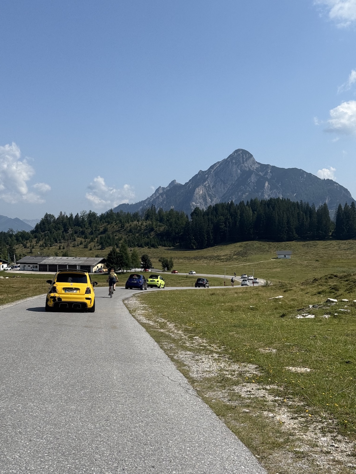 Mit 14 Abarth, weitere 5 folgten später, machten wir uns auf die Reise, die uns über Landstraßen zur Mautstation der ‚Postalmstraße‘ in Abtenau führte.