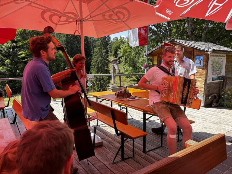 Von den Wirtsleuten Liesi und Andy wurden wir herzlich begrüßt und auf uns warteten frisch gekochte, heimische Köstlichkeiten. Das zwei Musikanten uns und die anderen Gäste musikalisch unterhielten, freute uns alle.