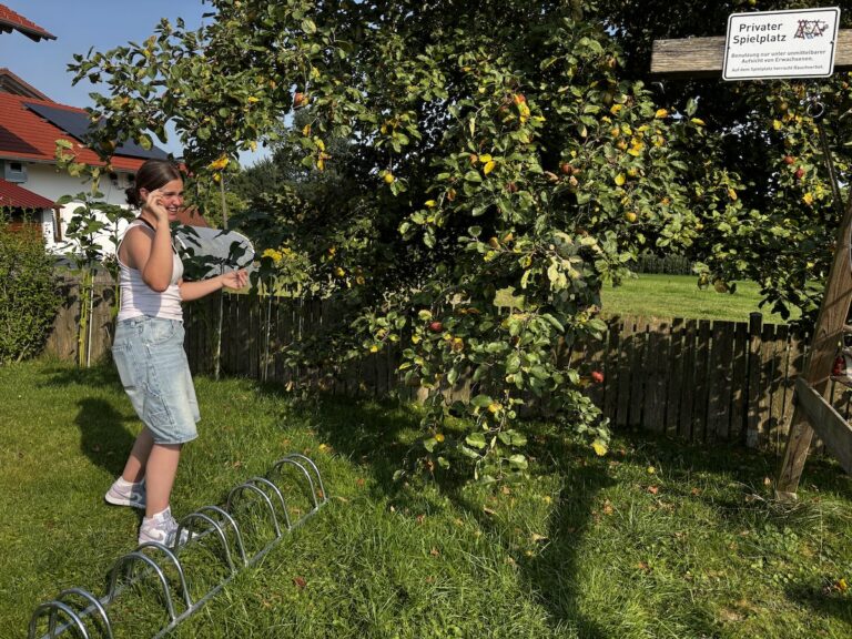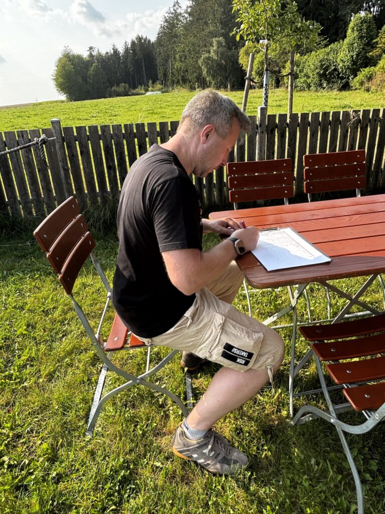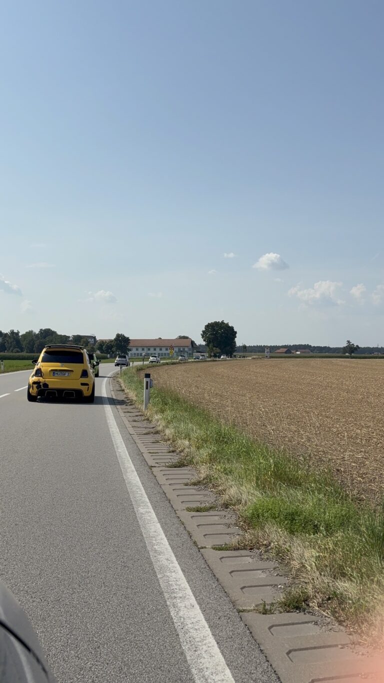 Start: Parkplatz ‚Café Rösslhuber‘ in Bergheim. Bei Traumwetter, denn es ist Sommer.