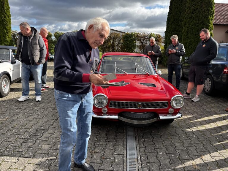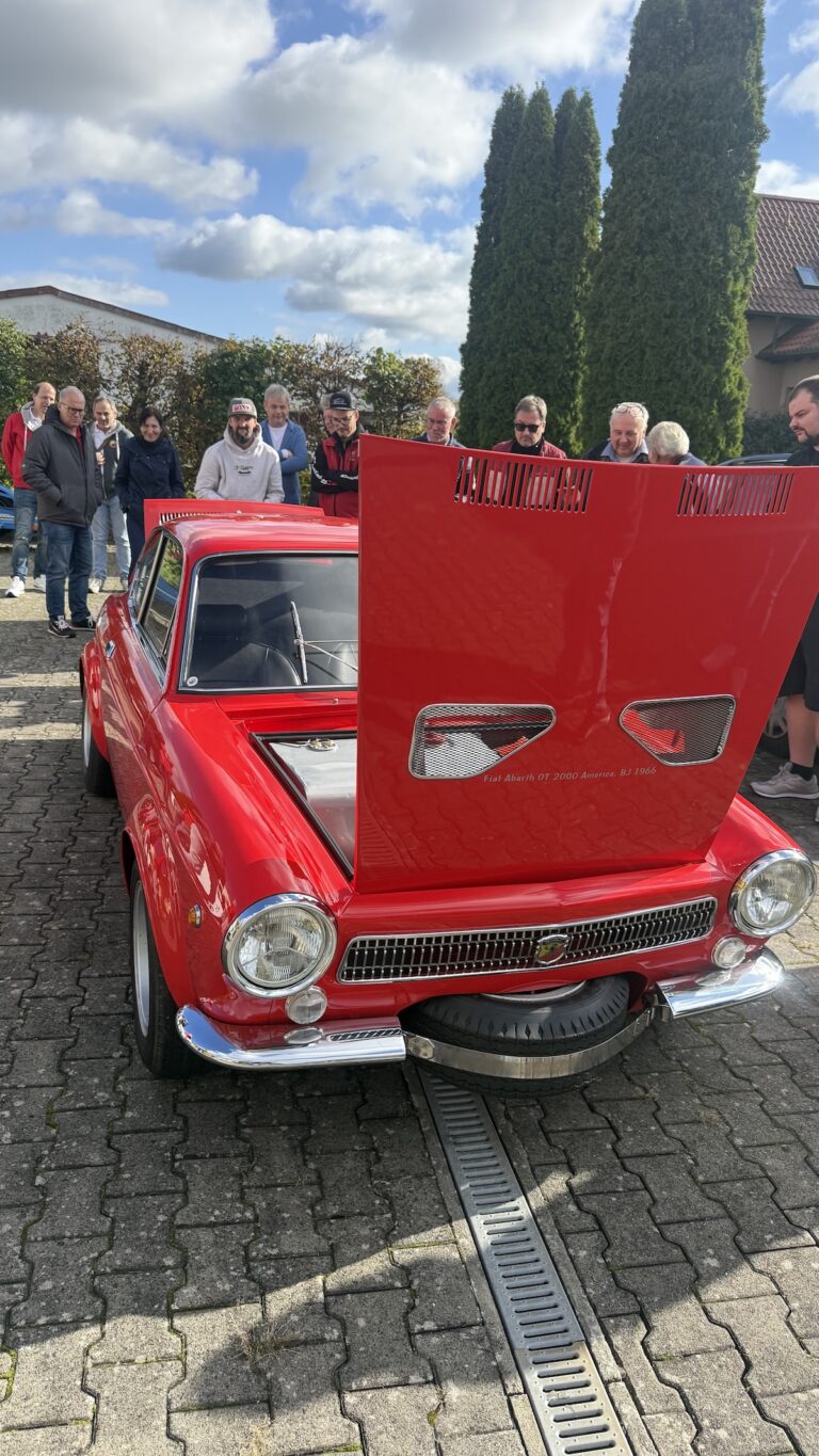 Wir hörten Leo Aumüller interessiert zu, wenn er seine Geschichten zu dem einen oder anderen Abarth zum Besten gab.