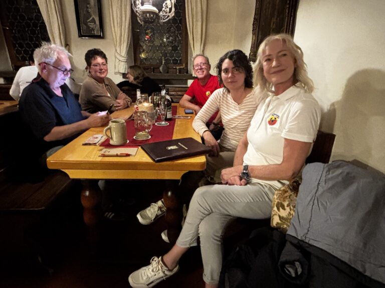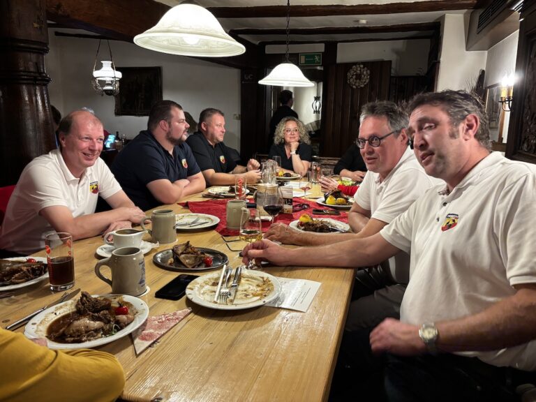 Gegen 16 Uhr erreichten wir unser Ziel, das „Flair Hotel Zum Benediktiner“ in Schwarzach am Main. Angekommen, eingecheckt und in einem Café die bereits angereisten Mitglieder begrüßt. Es war echt schön, alle wiederzusehen, und die Freude war riesig!