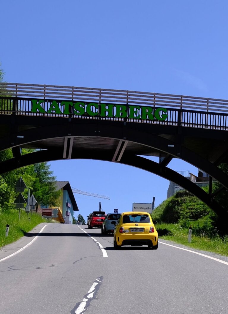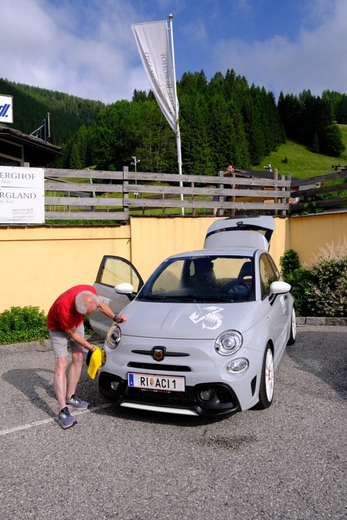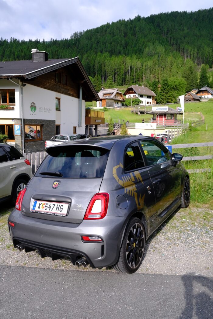 Unsere Fahrt durch das wunderschöne Gurktal geht weiter, und unser Ziel ist das ‚Hotel Berghof‘. In Bad Klein-Kirchheim haben wir unseren Abarth mit frischem Sprit versorgt, damit er für den Samstag bereit ist.