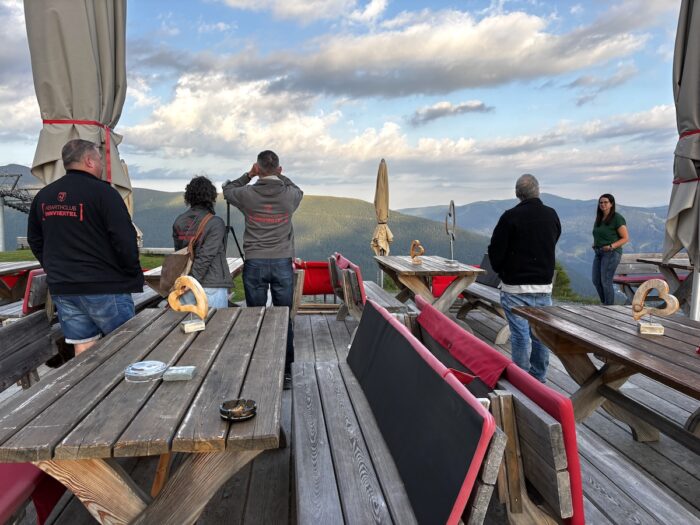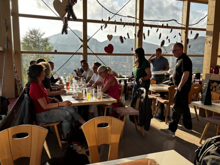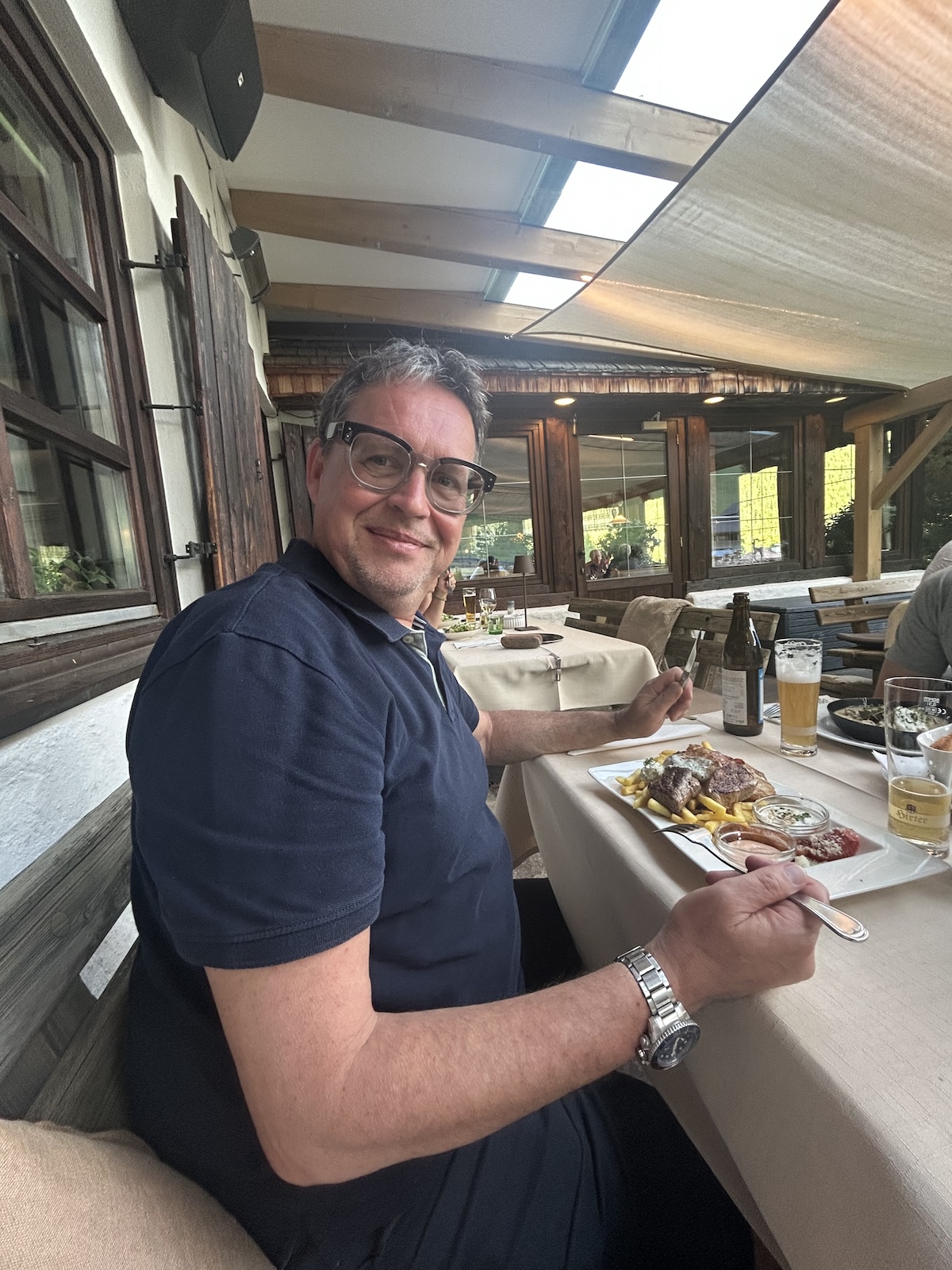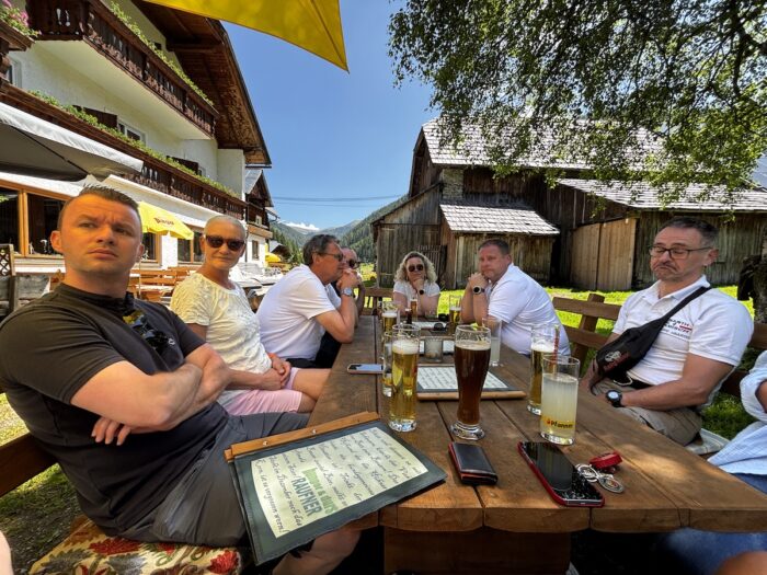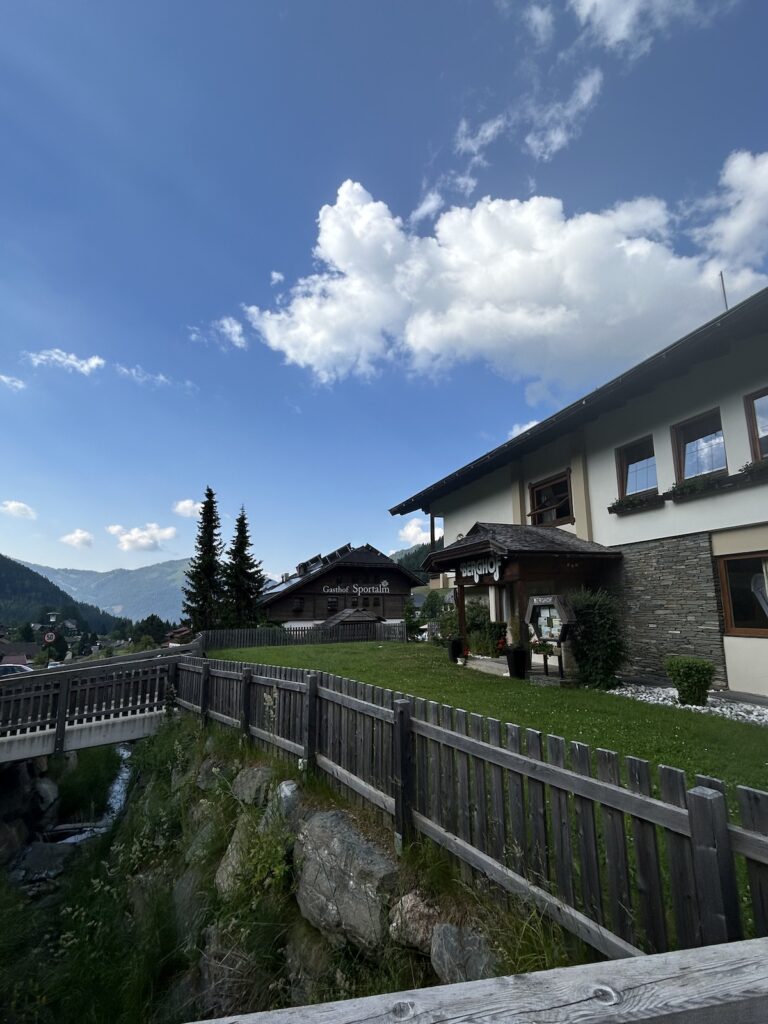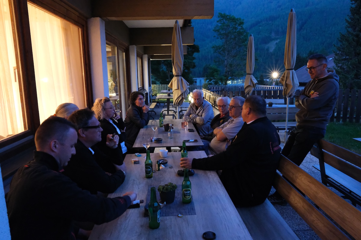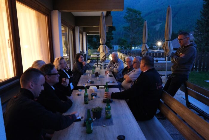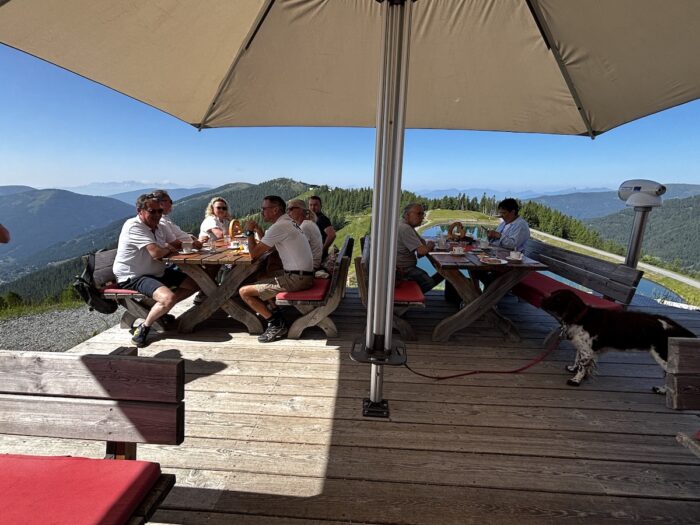 Für das Abendessen war in der benachbarten ‚Sportalm‘ reserviert. Gaumenfreuden bei Hausmannskost bis Pizza, was das Herz begehrt.Auf der Terrasse ließen wir es uns gut gehen.