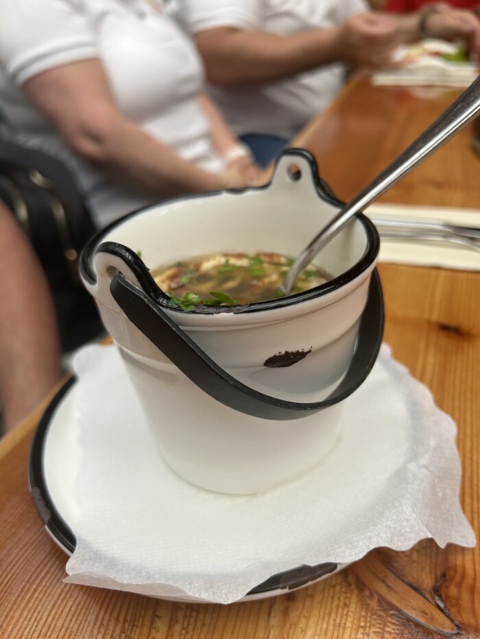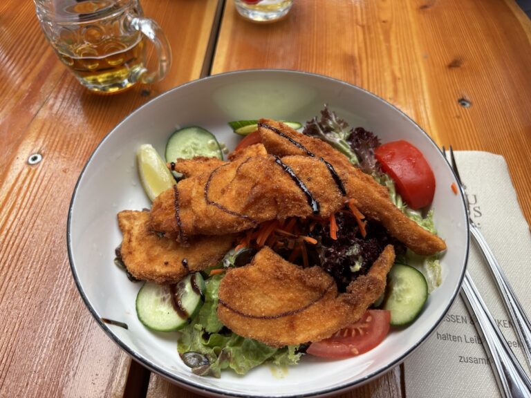 Im ‚Brauhaus‘, welches sich in einem historischen Gebäude und am Ufer der Mur befindet, war für uns im Biergarten reserviert. Wir genossen frisch gezapftes Bier und bodenständige Gerichte.