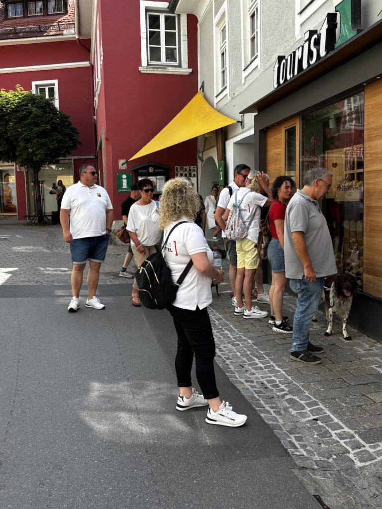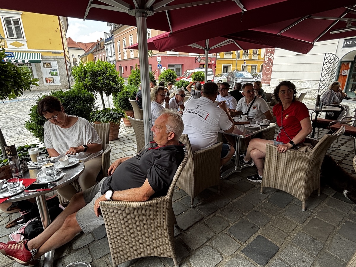 Wir haben es uns auf der schattigen Terrasse gut gehen lassen. Mit Blick auf den wunderschönen Stadtplatz mit den alten, vorbildlich renovierten Bürgerhäusern.
