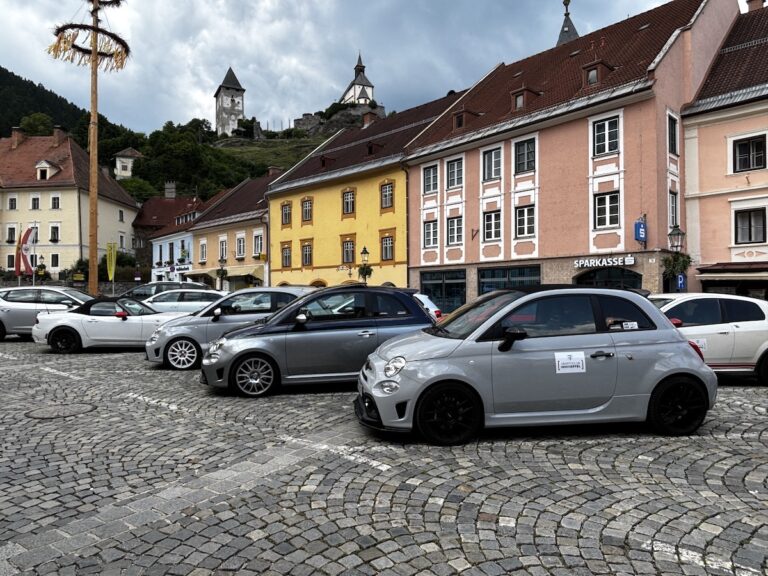 Mit 8 Abarth, 12 Personen aus Österreich, Bayern und der Schweiz begann in der Früh die Sternfahrt zum ersten gemeinsamen Treffpunkt in St. Michael im Lungau.