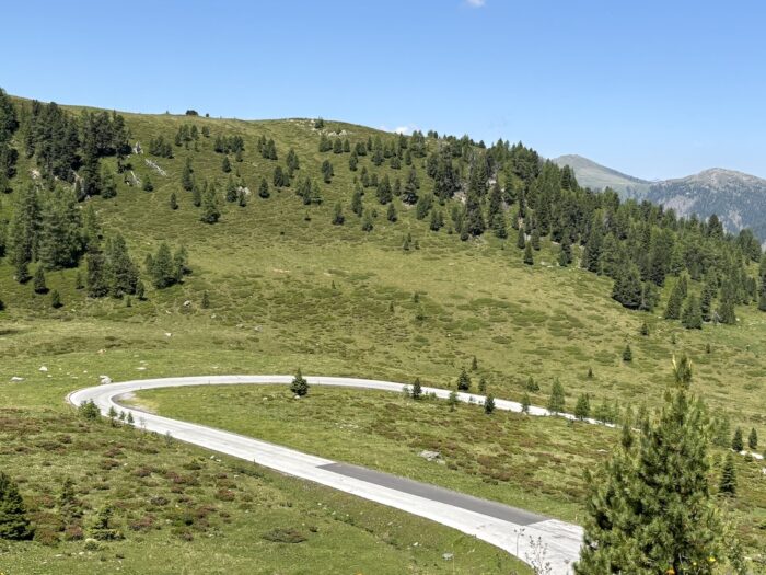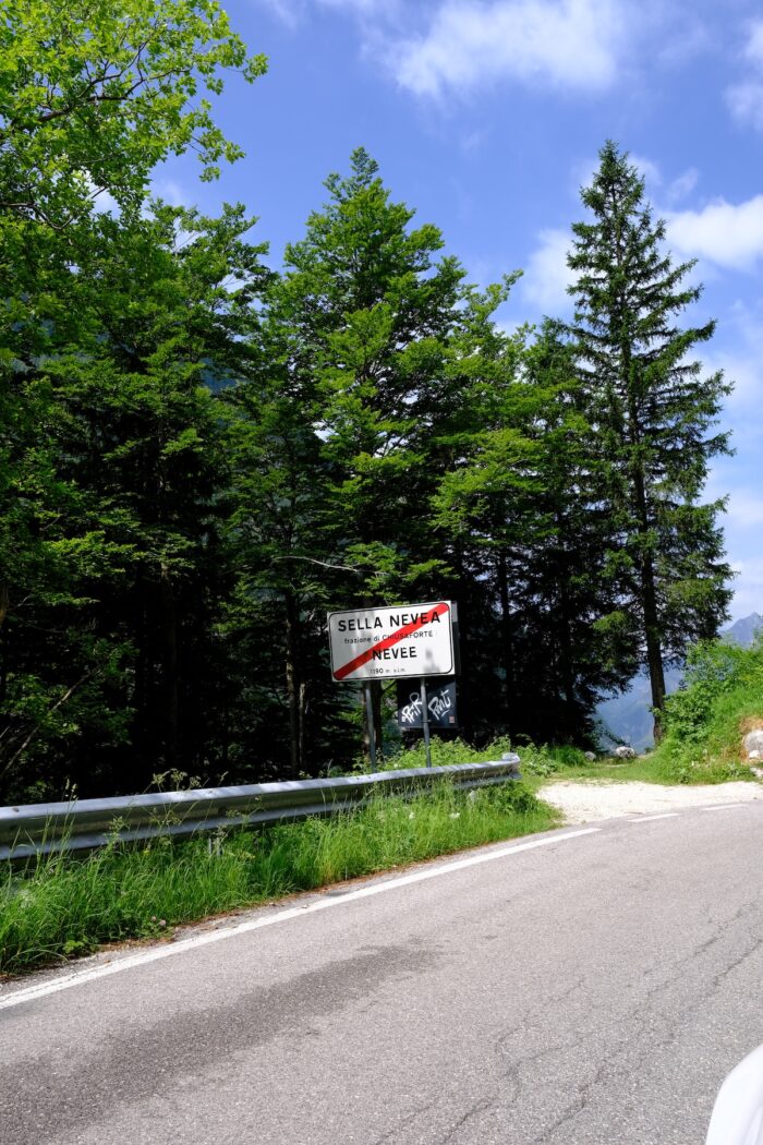 Der 1.200 m hohe ‚Nevea-Sattel‘ bietet mit seinen sanften Kurven und der wunderschönen Umgebung ein fantastisches Fahrerlebnis, dass durch eine Baustelle etwas getrübt wird.