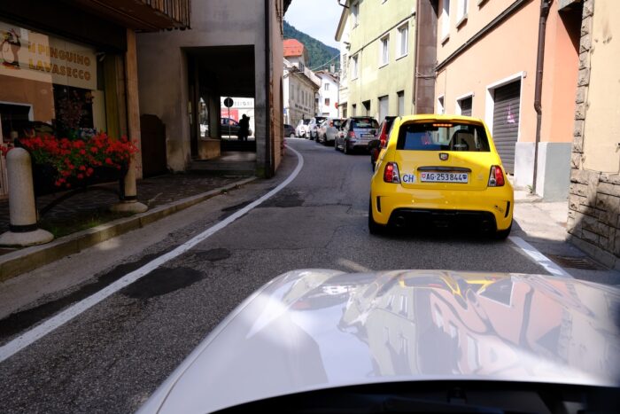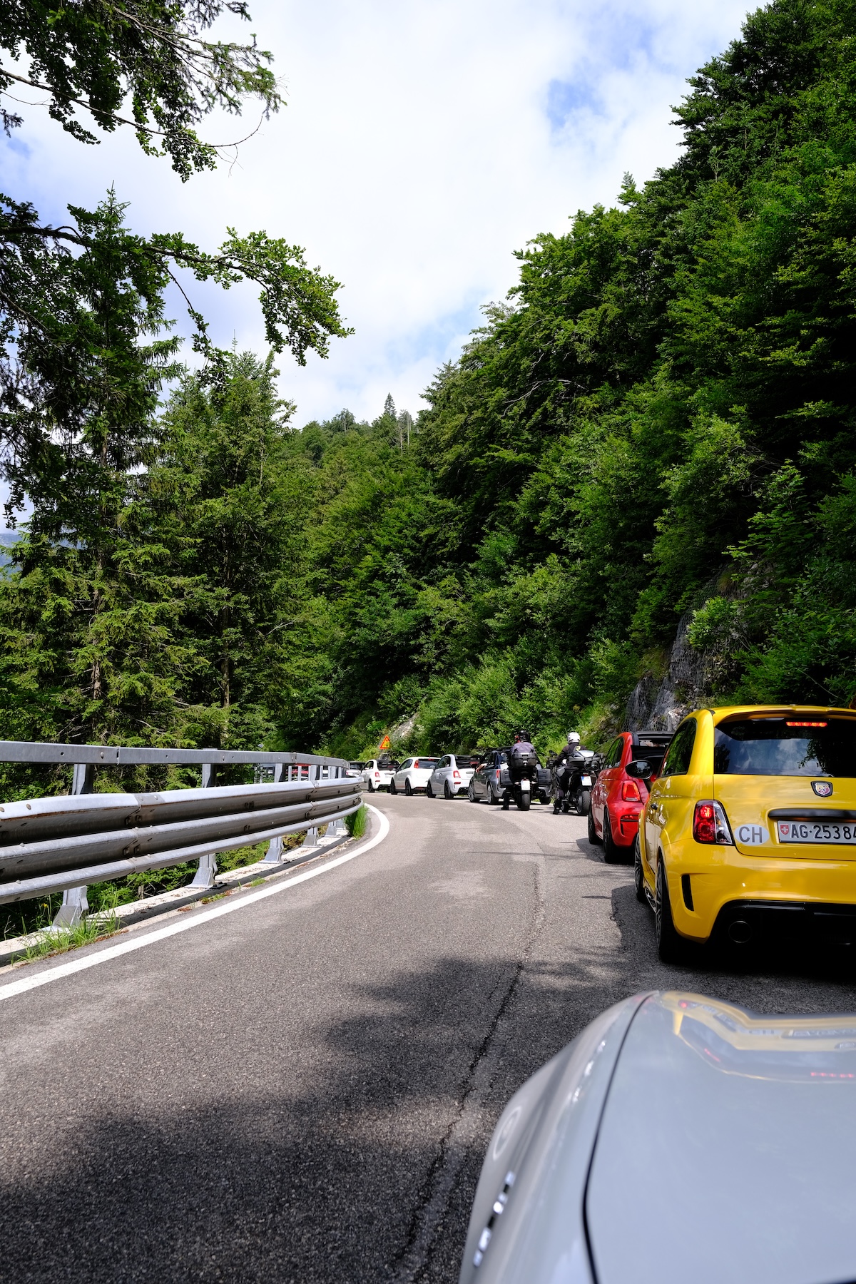 Es hätte uns schon gereizt, einen Stopp einzulegen und auf einer der vielen Seeterrassen einen erfrischenden Drink einzunehmen. Leider war es aufgrund der vielen Sommergäste nicht möglich, einen Parkplatz für 8 Abarth zu finden und so setzten wir unsere Fahrt fort.