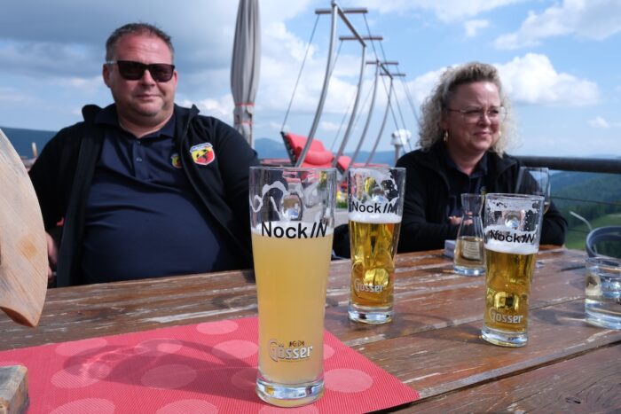 Für den Abend war in der ‚Sportalm‘ wieder für uns reserviert. Die Pizzen haben es uns angetan. Aber auch eine Kärntner Schinkenplatte war etwas Feines und dazu ein frisch gezapftes Gösser. Uns geht’s wieder gut.