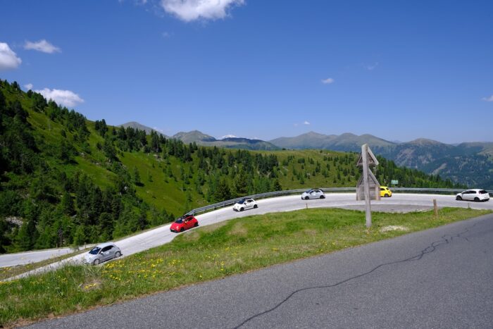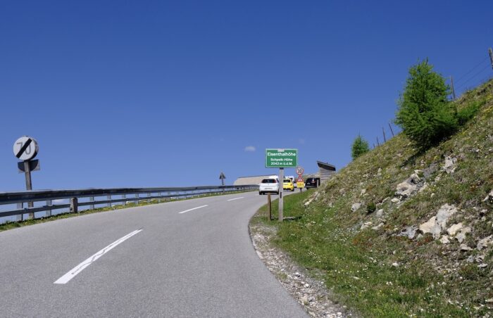 Der Parkplatz ‚Eisentalhöhe‘ ist mit einer Seehöhe von 2.042 m der höchste Punkt der Nockalmstraße.