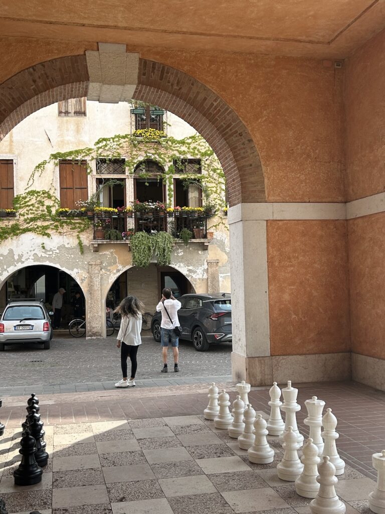 Marostica ist eine bezaubernde, mittelalterliche Stadt an den Hängen des Asiago-Plateaus. Alle zwei Jahre, im September, lebt die Legende des Schachspiels mit lebenden Figuren auf der Piazza Castello auf. 2026 findet die nächste Schachpartie statt (Anm.: sollten wir vielleicht?). Der Legende nach geht es um zwei Ritter aus Venedig, die sich in die Tochter des Statthalters von Marostica verliebt haben. Dieser entschied, dass derjenige, der die Tochter zur Braut erhält, der bei dem ‚edlen Schachspiel’ mit lebenden Figuren gewinnt. Der Besiegte ist aber nicht unbedingt als Verlierer zu bezeichnen, da ihm die jüngere Schwester zugesprochen wurde. Die Stadt ist auch eine Geschmacksroute zwischen Kirschbäumen (das rote Gold) und Olivenhainen.