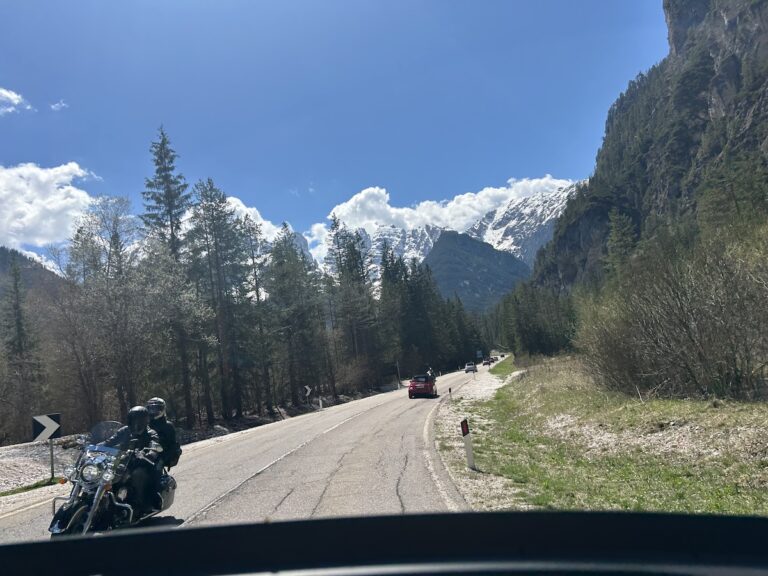 Gut gestärkt setzten wir unsere Fahrt zum Hotel fort. Ursprünglich war in Cortina D’Ampezzo eine Kaffeepause vorgesehen. Der teuerste und exklusivste Skiort Europas. Traumhaft gelegen inmitten der Dolomiten, mit Blick auf die berühmte Felsformation „Drei Zinnen“. Austragungsort der Olympischen Winterspiele 1956 und der Alpinen Skiweltmeisterschaften, zuletzt 2021. Leider fanden wir keinen fußmäßig geeigneten Parkplatz zum Zentrum. Weiter ging’s Richtung Zielort Longa di Schiavon. Nach über 5 Stunden reine Fahrzeit und gefahrenen über 300 km ab Aurach erreichten wir bei Sonnenschein und Temperaturen nahe 30 Grad unser **** Hotel.