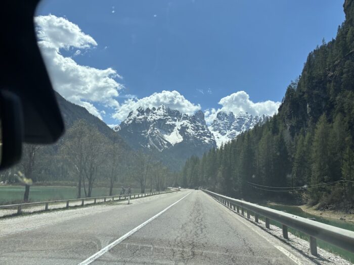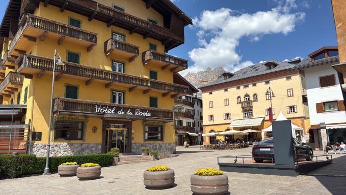 Gut gestärkt setzten wir unsere Fahrt zum Hotel fort. Ursprünglich war in Cortina D’Ampezzo eine Kaffeepause vorgesehen. Der teuerste und exklusivste Skiort Europas. Traumhaft gelegen inmitten der Dolomiten, mit Blick auf die berühmte Felsformation „Drei Zinnen“. Austragungsort der Olympischen Winterspiele 1956 und der Alpinen Skiweltmeisterschaften, zuletzt 2021. Leider fanden wir keinen fußmäßig geeigneten Parkplatz zum Zentrum. Weiter ging’s Richtung Zielort Longa di Schiavon. Nach über 5 Stunden reine Fahrzeit und gefahrenen über 300 km ab Aurach erreichten wir bei Sonnenschein und Temperaturen nahe 30 Grad unser **** Hotel.