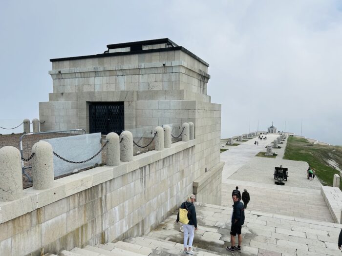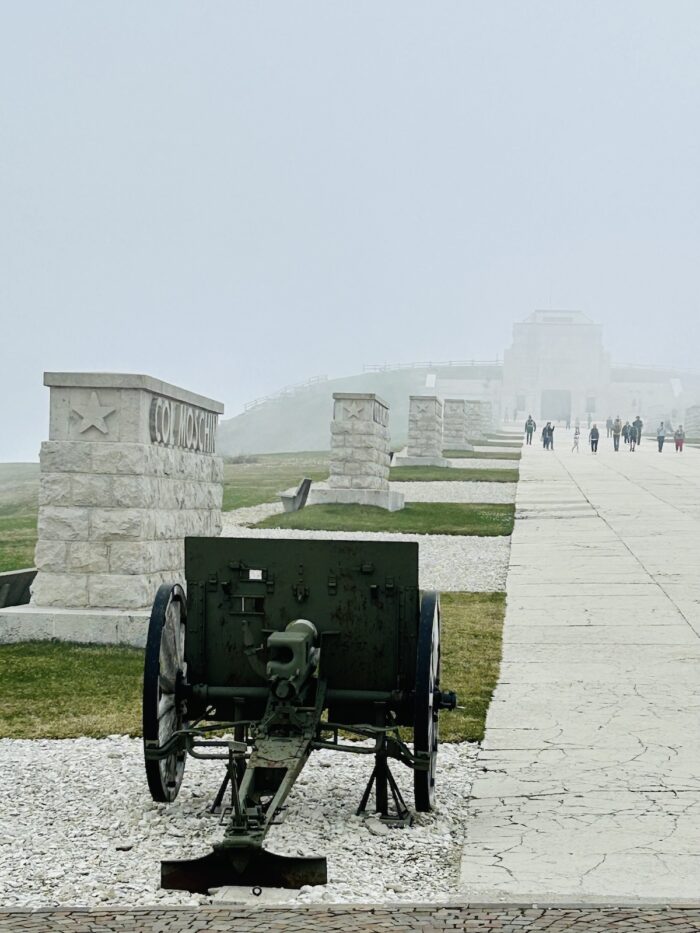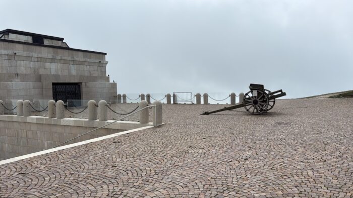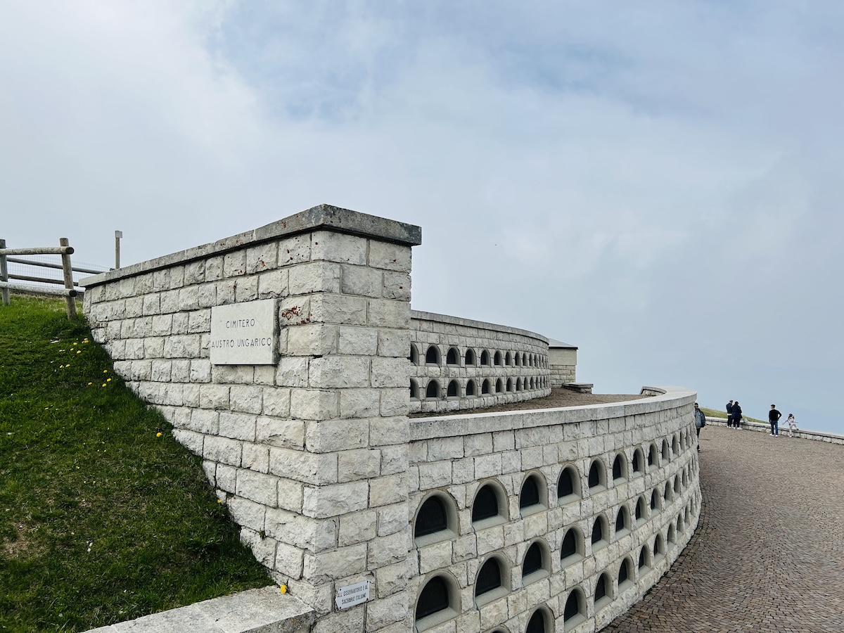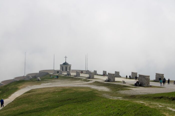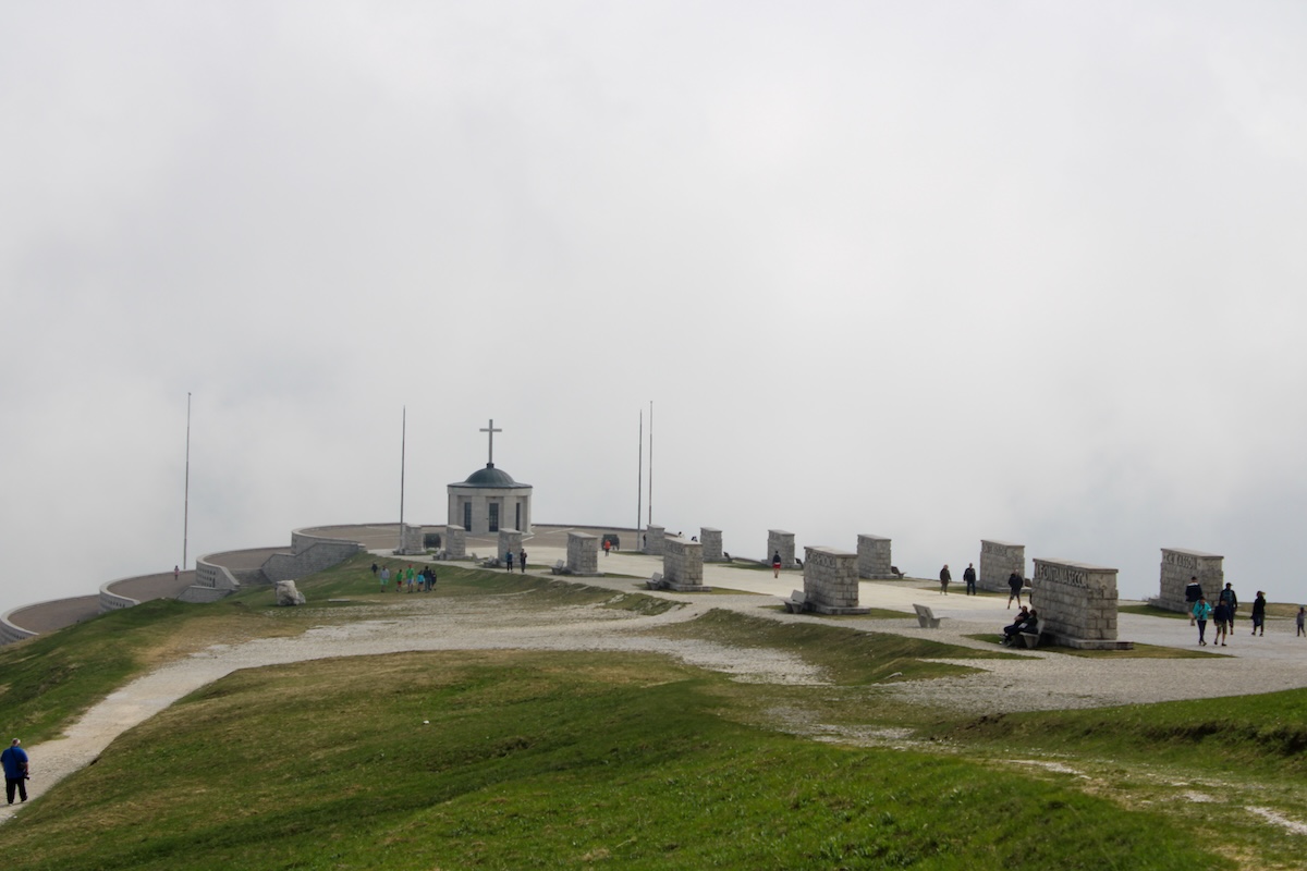 ‚Monte Grappa‘, mit knapp 1.800 m der südliche Abschluss der Dolomiten, ist sehr geschichtsträchtig. Er gilt als das Nationalheiligtum der Italiener. Im 1. Weltkrieg markierte der MC die Frontlinie zwischen Italien und Österreich-Ungarn. Hier fand ein erbitterter Stellungskrieg statt, bei dem auf beiden Seiten tausende Soldaten ihr Leben lassen mussten. Zur Erinnerung errichtete die italienische Regierung unter Mussolini 1930 eine Gedenkstätte. Ruinen von Kasernen und Befestigungsanlagen geben einen Einblick, was sich damals hier zugetragen haben muss.