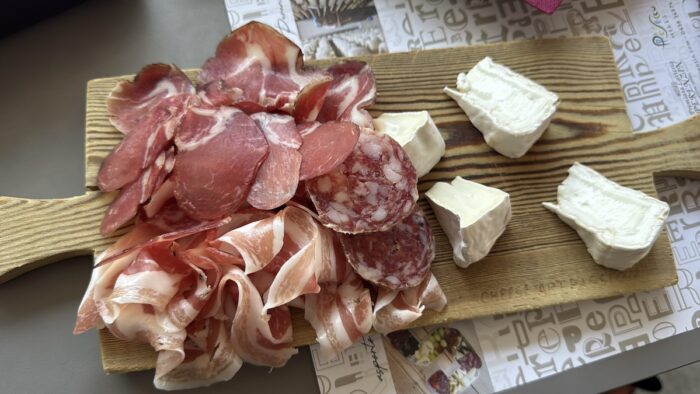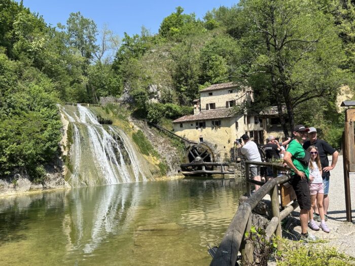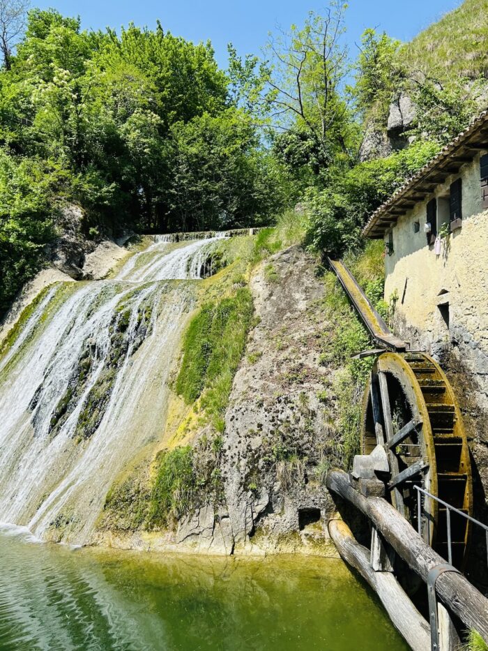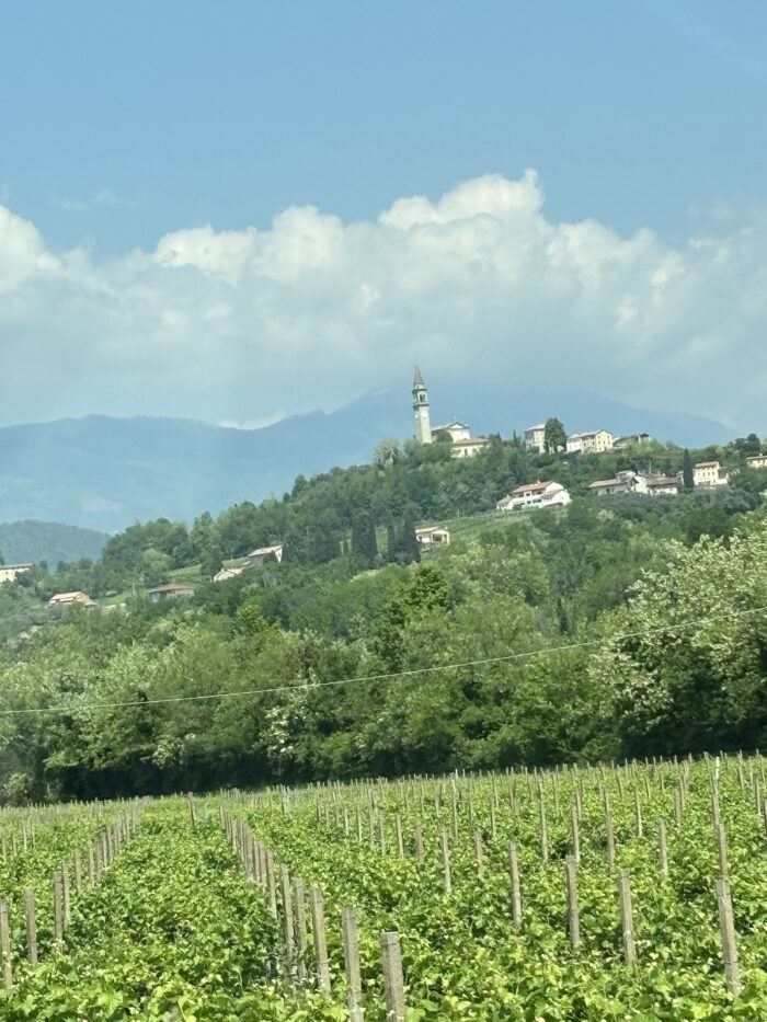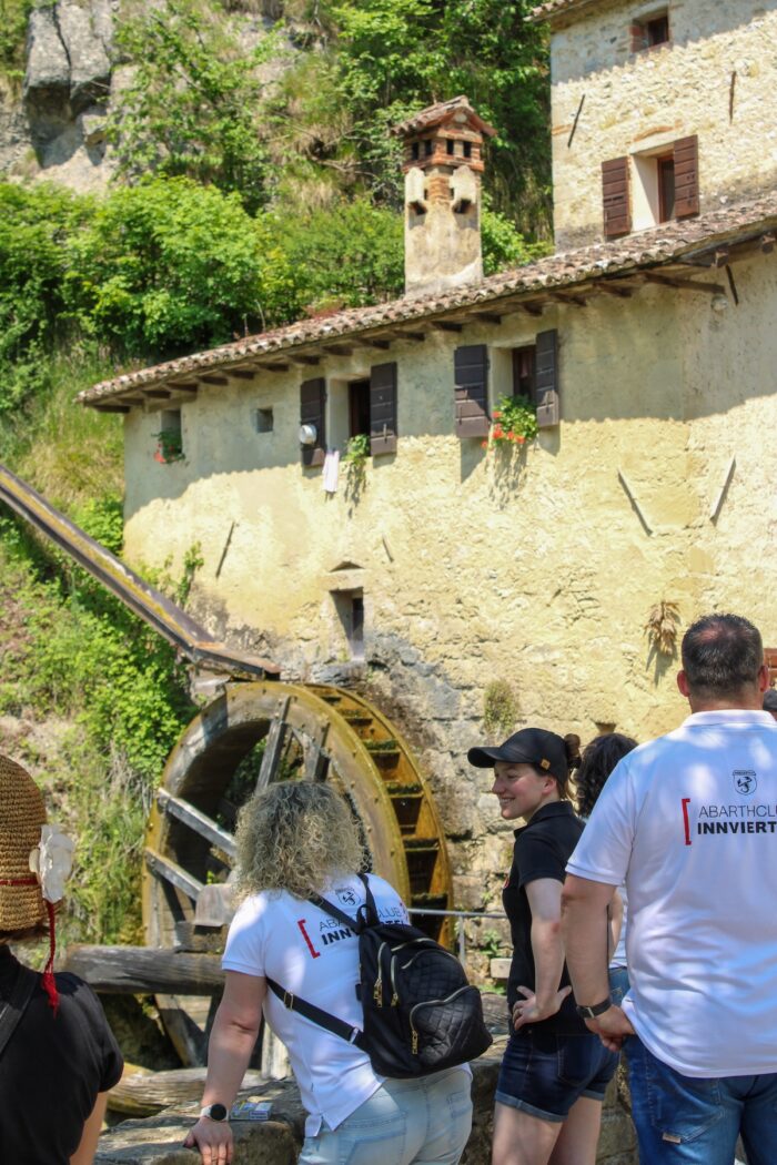 Wir hatten in der ‚Bottega Perenzin‘ in San Pietro di Feletto für eine typische Jause reserviert – die haben wir uns auch genüsslich munden lassen. Auf der weiteren Fahrt nach Refrontolo haben wir einen Fotostopp bei der kleinen, hundertjährigen Mühle ‚Molinetto della Croda‘ eingelegt – das war einen Abstecher wert. Die Hügel wurden immer steiler, teilweise hatten wir atemberaubende Ausblicke auf eine der schönsten Weinlandschaften Italiens. In Valdobbiadene endet die ‚Prosecco-Straße‘ – die Fahrt war ein Erlebnis.