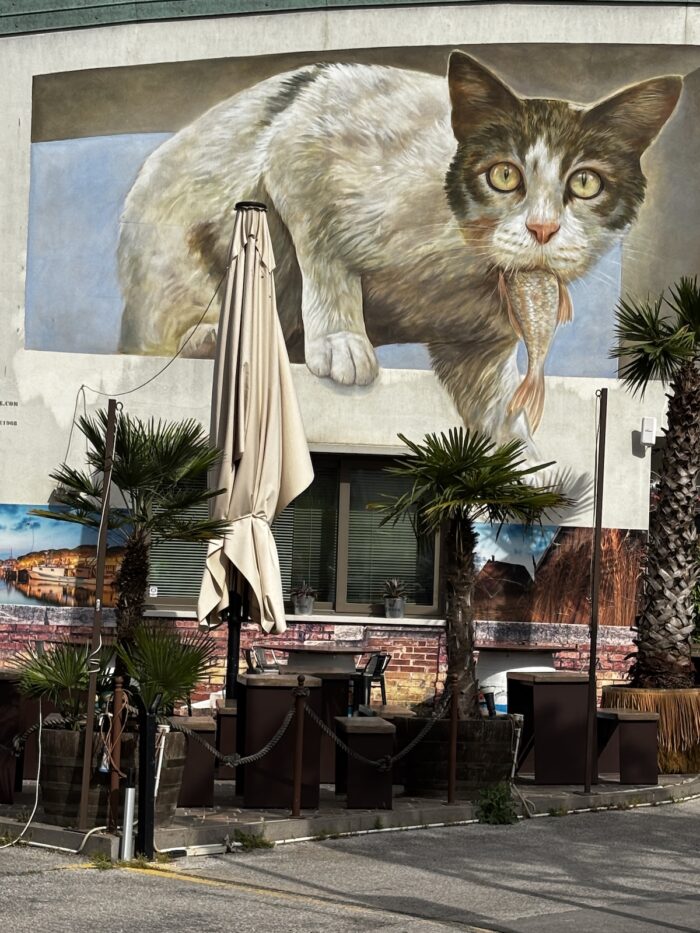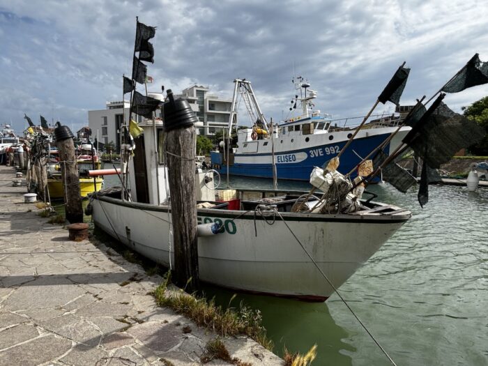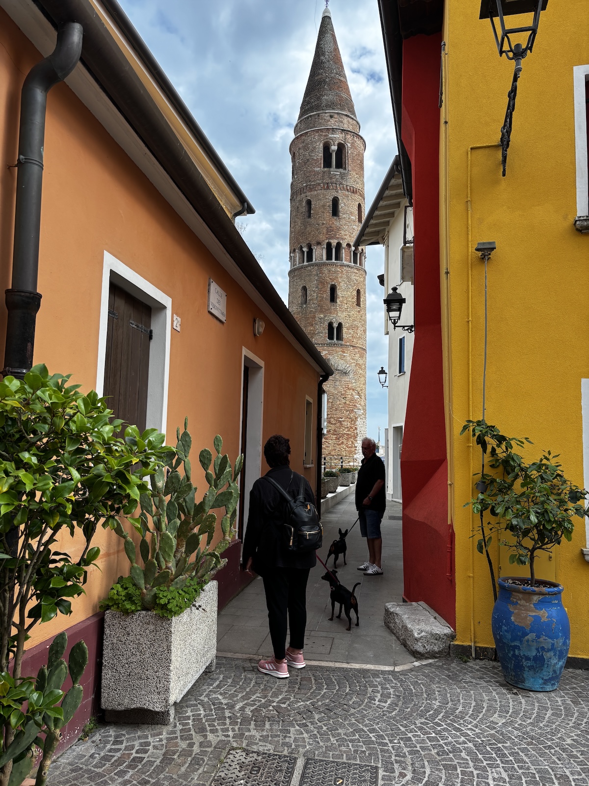 Caorle, ein Fischerstädtchen, stand zum Abschluss auf dem Programm. Das war der Ort, der uns, Annemarie und mir zusagte. Ein Bummel durch die Altstadt mit den schmalen Gassen und idyllischen Plätzen, vorbei an den bunt gestrichenen, restaurierten Fischerhäuschen und dem Dom mit dem etwas geneigten Glockenturm. Auf dem Damm am Strand hatten wir einen tollen Blick auf das Meer, das durch den immer noch starken Wind ganz schön in Bewegung war. Die Gischt war hier noch zu spüren. Sehenswert auch der Hafen mit Fischerbooten.
