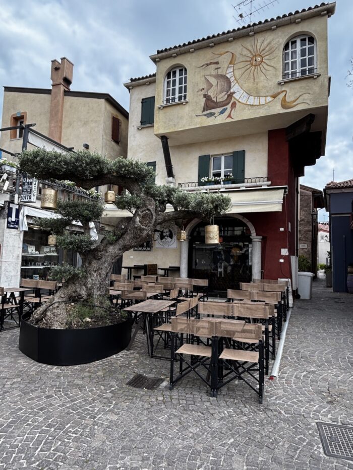 Na, was wohl: jetzt fällt mir partout das Wort für die ‚orange‘ Flüssigkeit mit Alkohol nicht ein……..’Aperol-Spritz’, das ist es. Nun, es gibt auch noch andere Getränke, z. B. Vino aus der Region. Espresso, Cappuccino und vieles mehr. Jedem, was ihm gefällt.