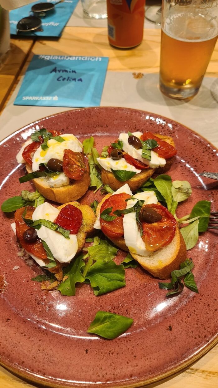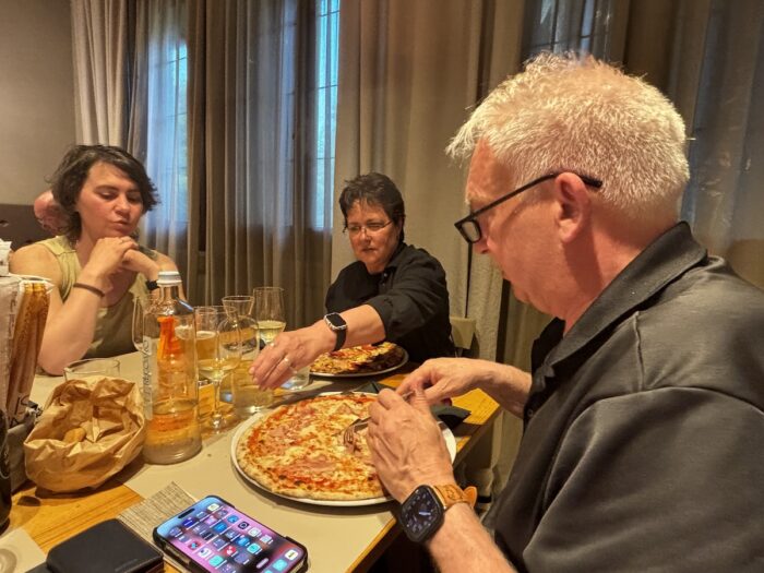 Die Vorfreude auf italienische Köstlichkeiten war groß. Dem Liebhaber der italienischen Küche wurde nahezu alles geboten: Pizza – Pasta – Fisch und Fleischgerichte. Alles, was das Herz begehrt. Die Zubereitung der Pizza wird hier zur Kunst: lange Teigführung und Teige aus biologischem Vollkornmehl und ausschließlich im Holzofen gebacken. Wie einige andere entschied auch ich mich für eine Pizza; dünner Teig und auch bei der Wahl der Belege wird auf Qualität geachtet. Die Pizza und die anderen Gerichte waren einfach himmlisch! Es wurde noch ein gemütlicher, unterhaltsamer Abend.