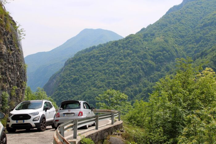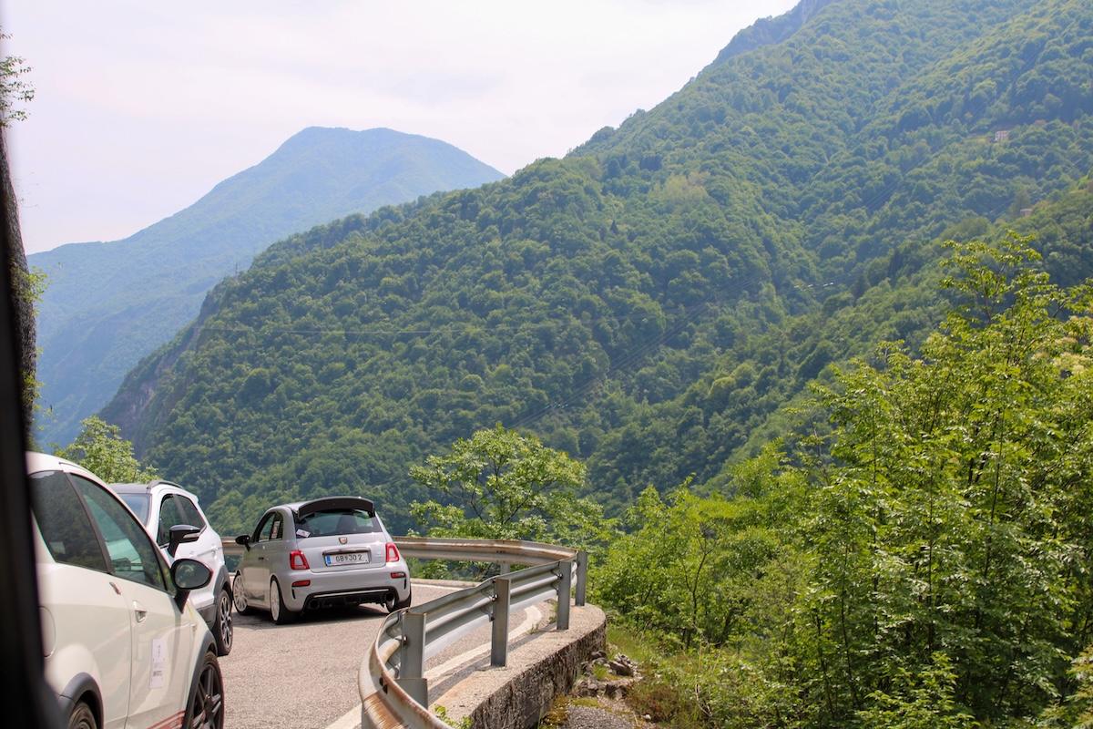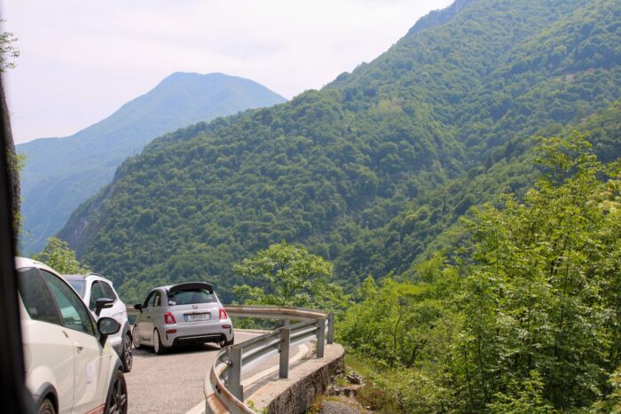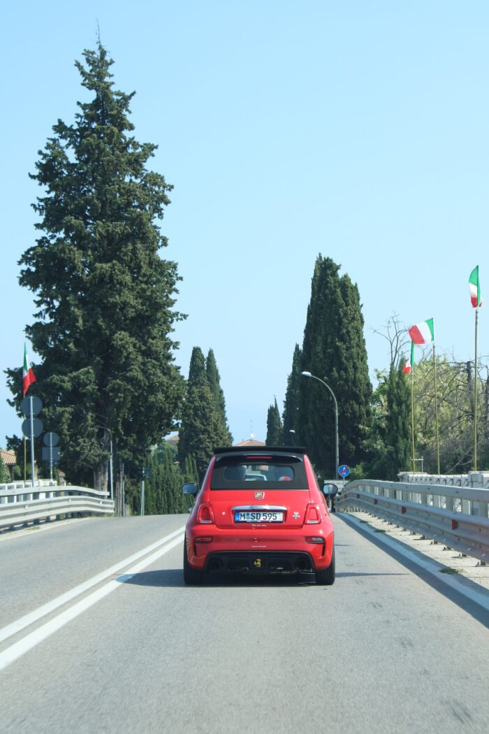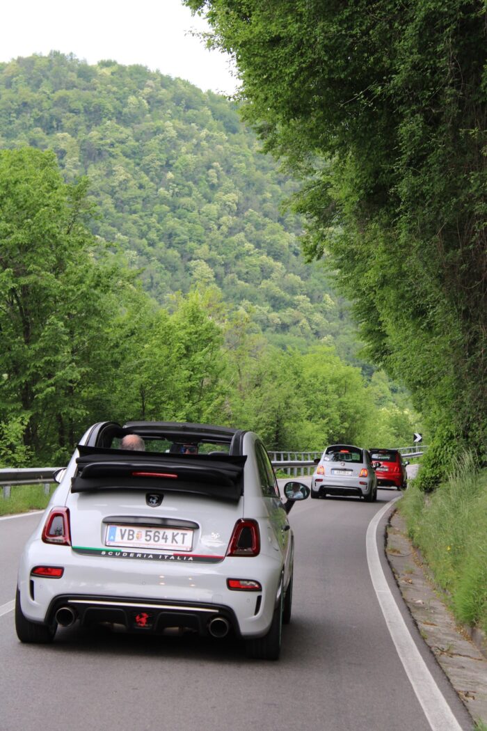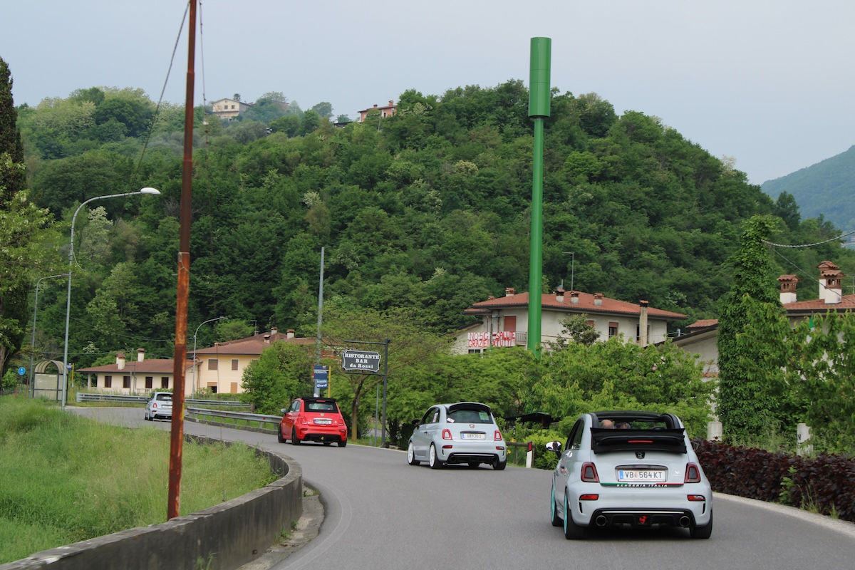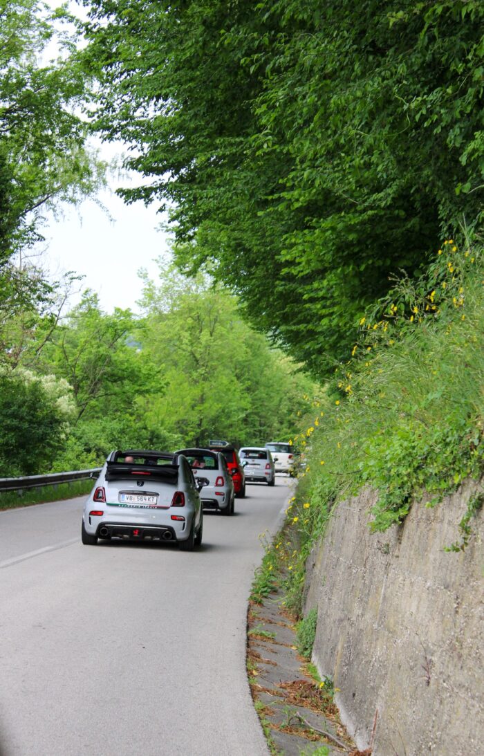 Eine spektakuläre Fahrt stand uns bevor – quasi ein Kurventraum. Enge Straße, Kurven und Kehren, wir und die Abarth hatten nur so unsere Freude. via Valstagna, der Brenta entlang, vorbei an Pove del Grappa, dann Romano d’Ezzelino, weiter über Semonzo und Campo Croce auf den Monte Grappa.