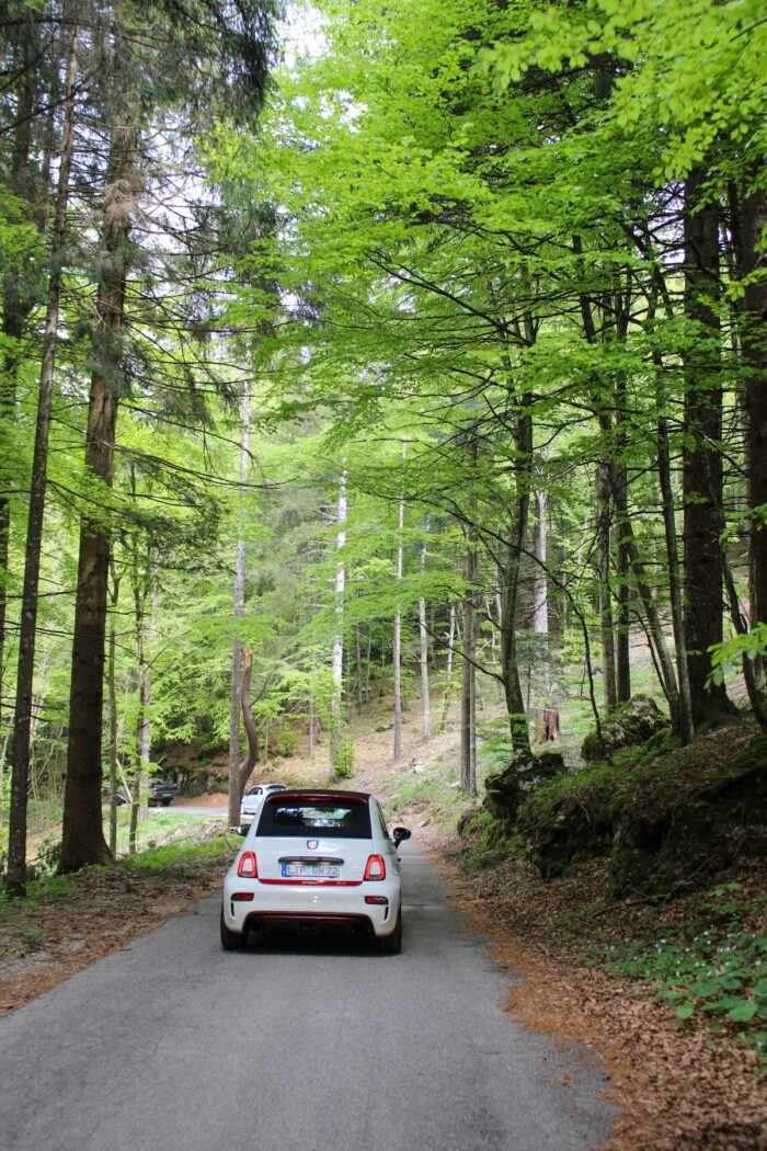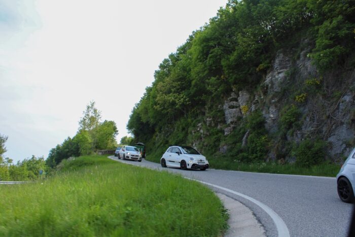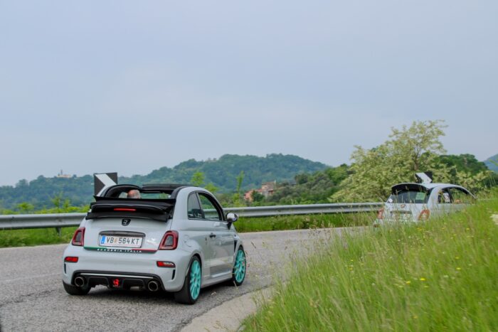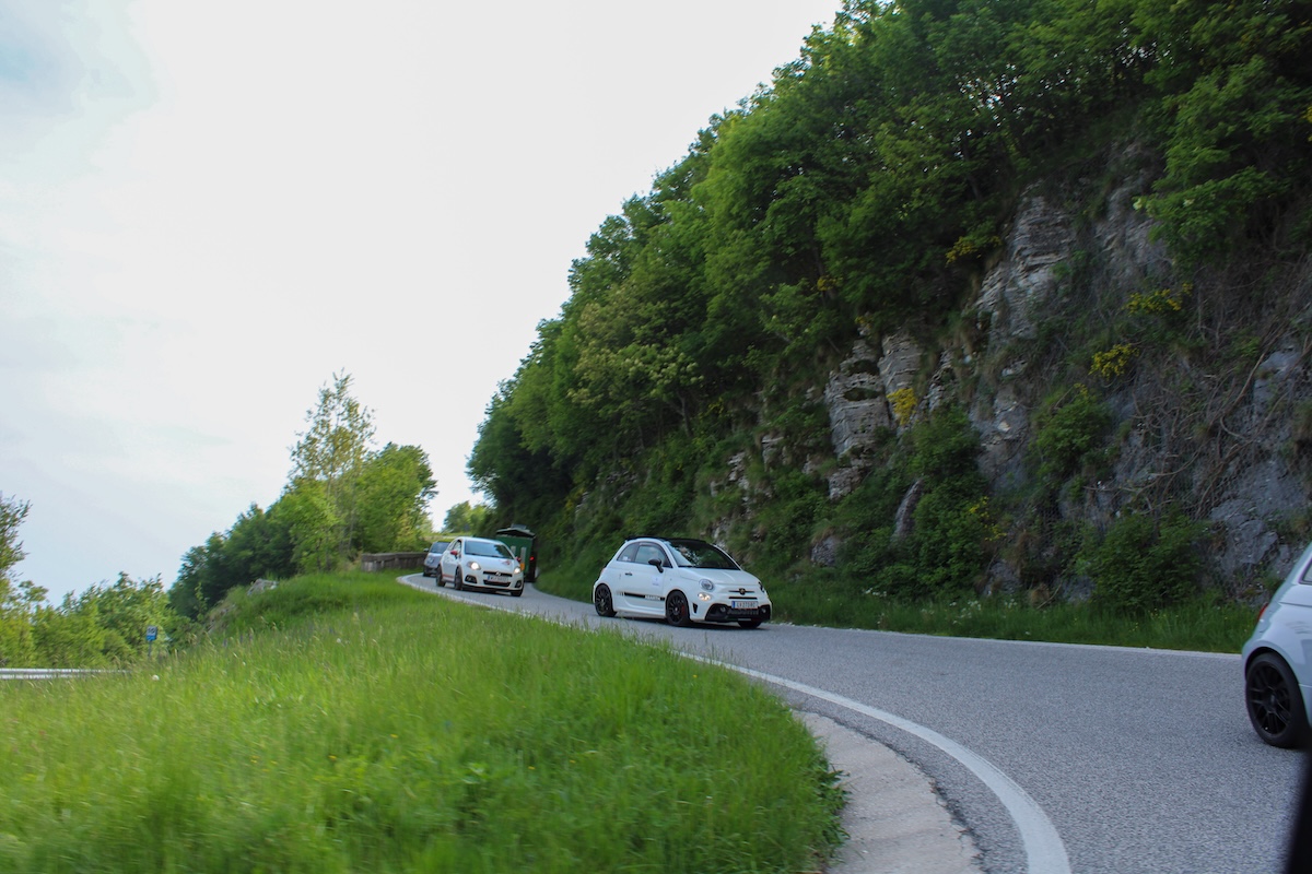 Auf kurvigen Straßen, prädestiniert für unsere Abarth hinauf auf das Hochplateau von Asiago, einem magischen Ort.