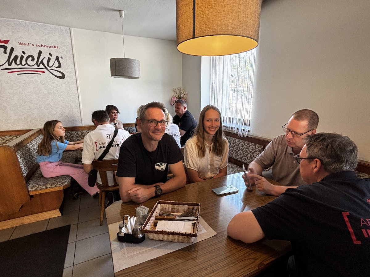 Die „Vier“, die Tage zuvor am Gardasee Urlaub gemacht haben, waren inzwischen auch eingetroffen, sodass wir für heute vollzählig waren.
