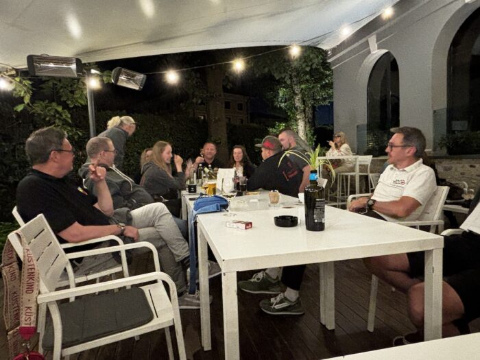 Bevor es zum kulinarischen Teil des Abends kam, haben wir ‚Drei‘ die Amici herzlich willkommen geheißen. Kurzes Briefing, Vorstellung der Touren und Aufenthalte und Übergabe des Roadbook samt Aufkleber mit dem Tour-Logo.