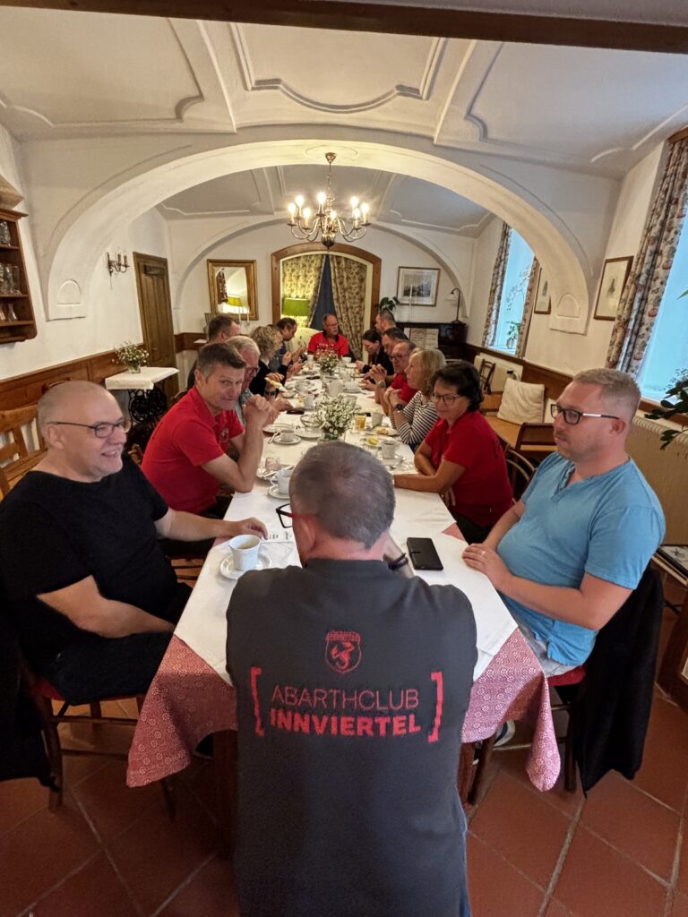 Freitag, 26.9. trafen sich zur Mittagszeit 9 Abarth nebst Begleitung im „Gasthaus am See“ am Mondsee.