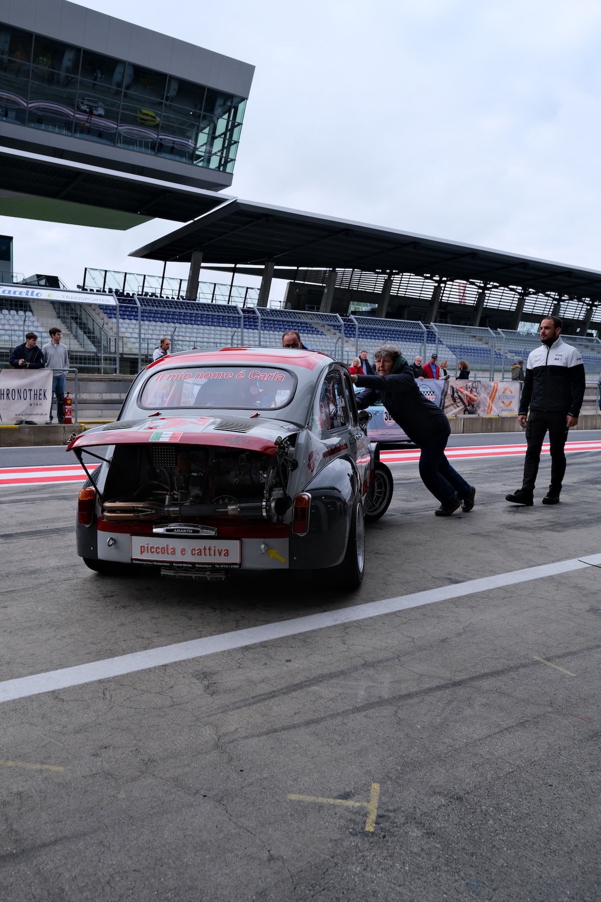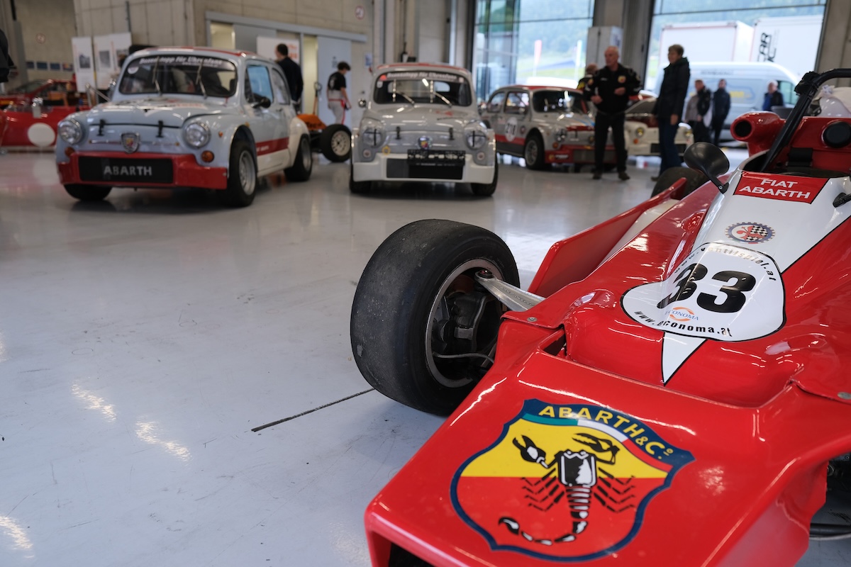anschl. fuhr eine Gruppe mit 6 Abarth zum Red Bull Ring, um dem „Ventilspiel“ Spektakel beizuwohnen.