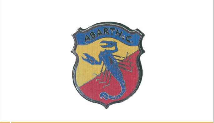 1954 – nach den ersten sportlichen Erfolgen erlangt das Logo allgemeine Bekanntheit. Der Skorpion wird um einen zweifarbigen Wappenschild ergänzt: Gelb steht für Meran, de zweiten Heimat Carlo aBarth und dessen Vater. rot= für die Farbe italienischer Rennwagen.