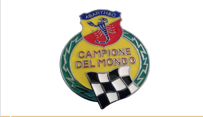 1963 – den Sieg in der 1. Division der Marken-Weltmeisterschaft erringt 1962 der Abarth 1000 Bialbero. Der Erfolg wird mit einem speziellen Emblem gefeiert. Das Abarth Logo wird um drei Symbole bereichert: schwarz-weiß karierte Fahne – Schriftzug ‚Campione del Mono‘ und einen stilisierten Lorbeerkranz